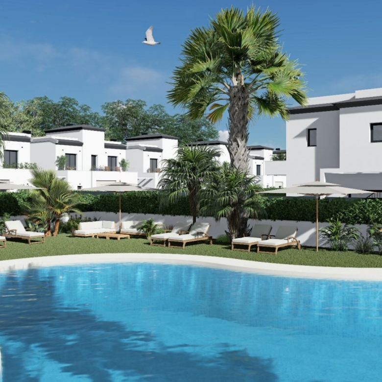 Découvrez cette résidence exclusive de bungalows de 86.28m² avec un jardin de 64m², et avec 2 ou 3 chambres. C’est une urbanisation privée, qui dispose d’une piscine commune, de jardins et d’une aire de jeux pour enfants pour profiter du temps libre.