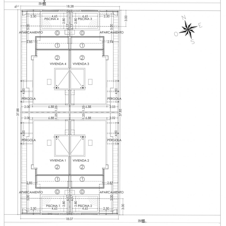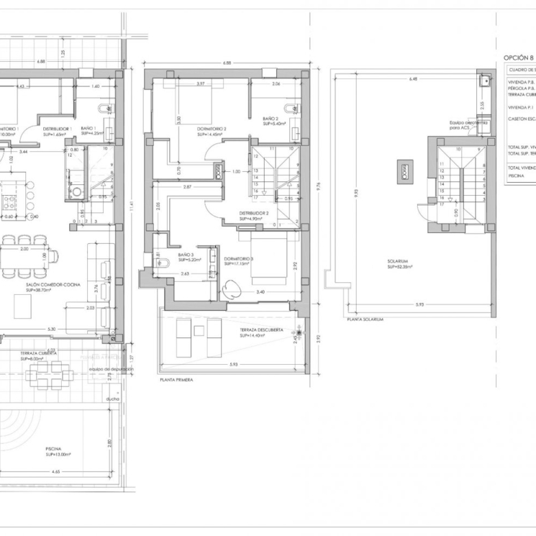 Nouvelle construction de 4 quads modernes dans un quartier résidentiel proche du centre ville de San Pedro Del Pinatar et des plages de Lo Pagan.