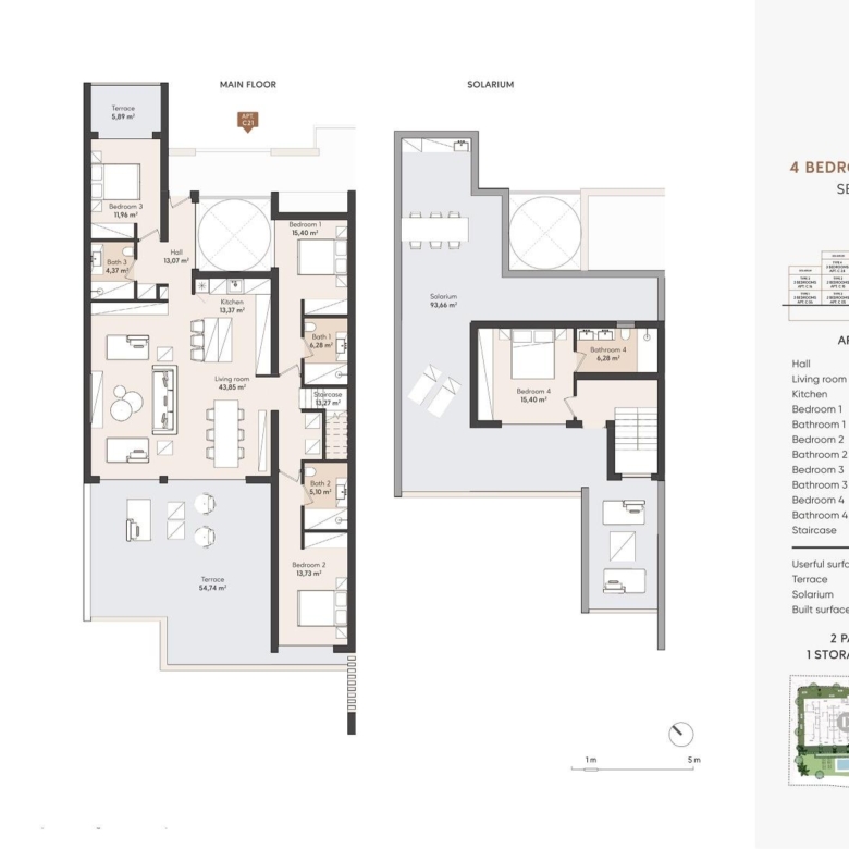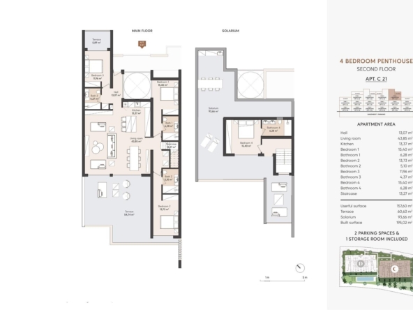 Chaque unité comprend deux places de parking dédiées pour votre confort. Un espace de stockage supplémentaire est disponible pour vos affaires.