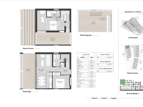 En option : Bain à remous sur la terrasse, borne de recharge pour voitures électriques. Panneaux photovoltaïques (particulièrement efficaces dans les types 2 et 3). Appartements de type 1 : Effacer le panneau coulissant entre la chambre et le salon. Appartements de type 2 : Escalier du patio anglais au rez-de-chaussée Type 3 : Fenêtre de la chambre supérieure au salon.