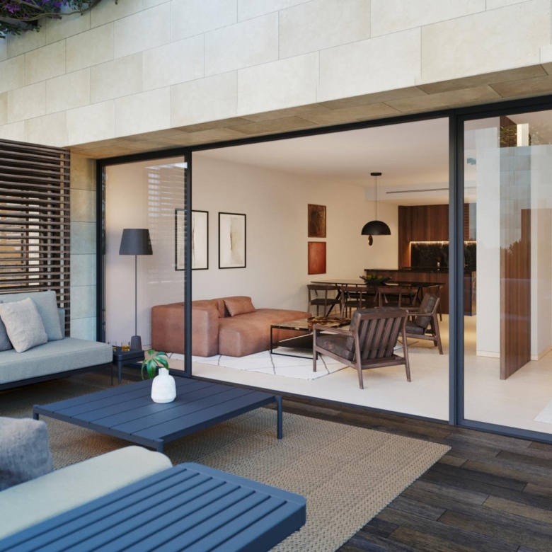 Les intérieurs Standard et Premium ont été conçus avec soin par nos architectes. Tous les appartements sont entièrement meublés avec des planchers chauffants dans tous les espaces, des interrupteurs Schneider, des serrures intelligentes et une automatisation de base de la climatisation, ainsi que des salles de bains et des cuisines à faible consommation d’eau, et des connexions à la station météorologique. Appareils suédois de Asko Kitchen : plaques de cuisson, fours et hottes, lave-vaisselle, réfrigérateurs. Buanderie : lave-linge et sèche-linge. Les portes coulissantes réunissent les terrasses et les salons en un seul espace, harmonisant la vie intérieure et extérieure, et chaque unité est conçue avec des murs mobiles pour s’adapter à l’évolution des familles. Des paravents en bois offrent de l’ombre tout en permettant la circulation de l’air. Standard : mobilier de couleur claire. Premium : meubles en bois avec vernis foncé, surfaces en pierre.