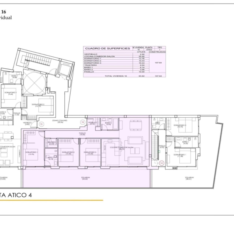 Cette résidence comprend 16 propriétés, avec 1, 2 ou 3 chambres et 1 ou 2 salles de bains, toutes avec des terrasses de 7m2 à 55m2, orientées sud ou ouest, avec solarium communautaire, jacuzzi, espace chillaut et sauna.