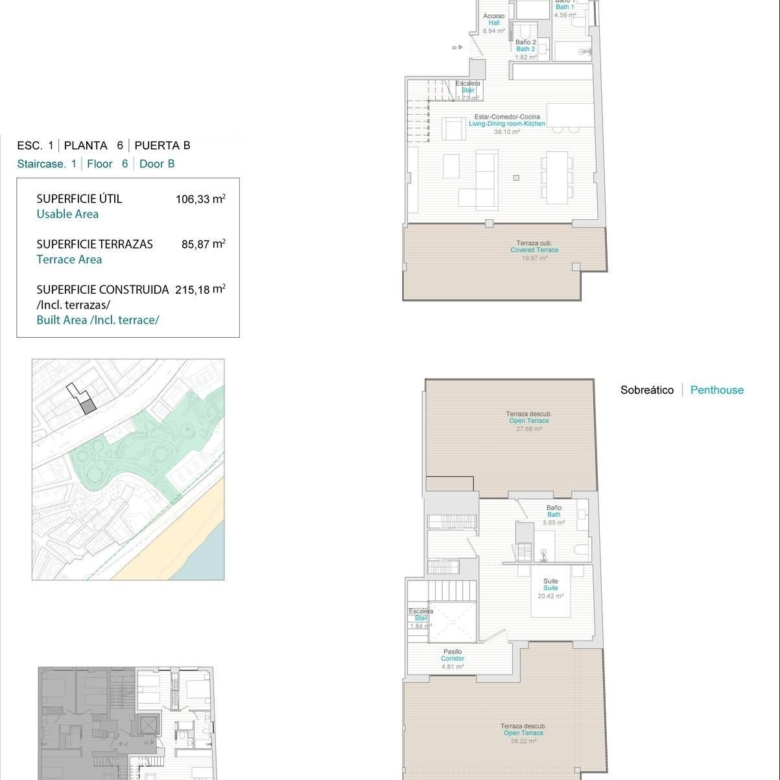 Appartements modernes avec 1, 2 et 3 chambres, cuisine ouverte sur le séjour, armoires encastrées, terrasses, système domotique, air conditionné, tous avec débarras inclus, ascenseur, club social, solarium communautaire avec salle de gym.