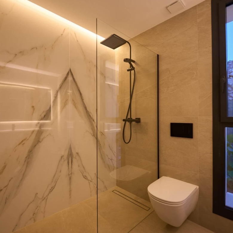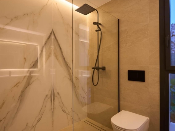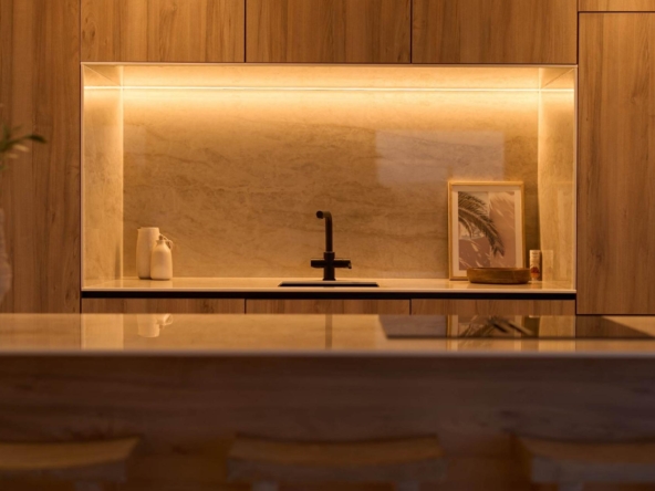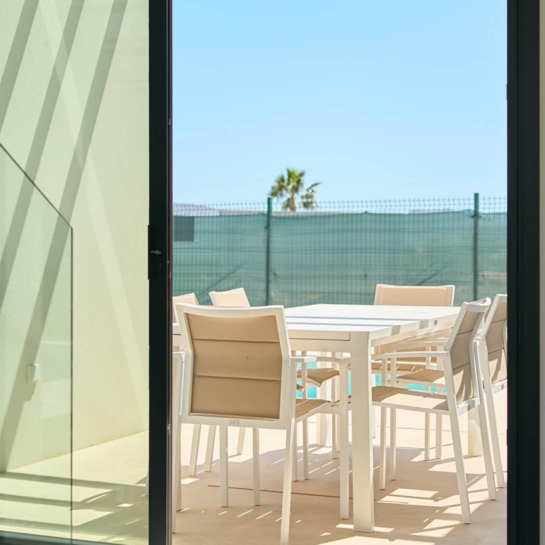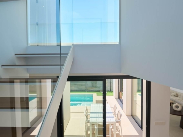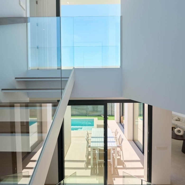 Des espaces ouverts et lumineux, d’une grande amplitude et sans barrières visuelles, offrant une sensation d’espace infini. De grandes fenêtres avec un accès direct à la piscine et au jardin. Le salon spacieux avec cuisine ouverte est l’endroit idéal pour partager avec la famille et les amis.