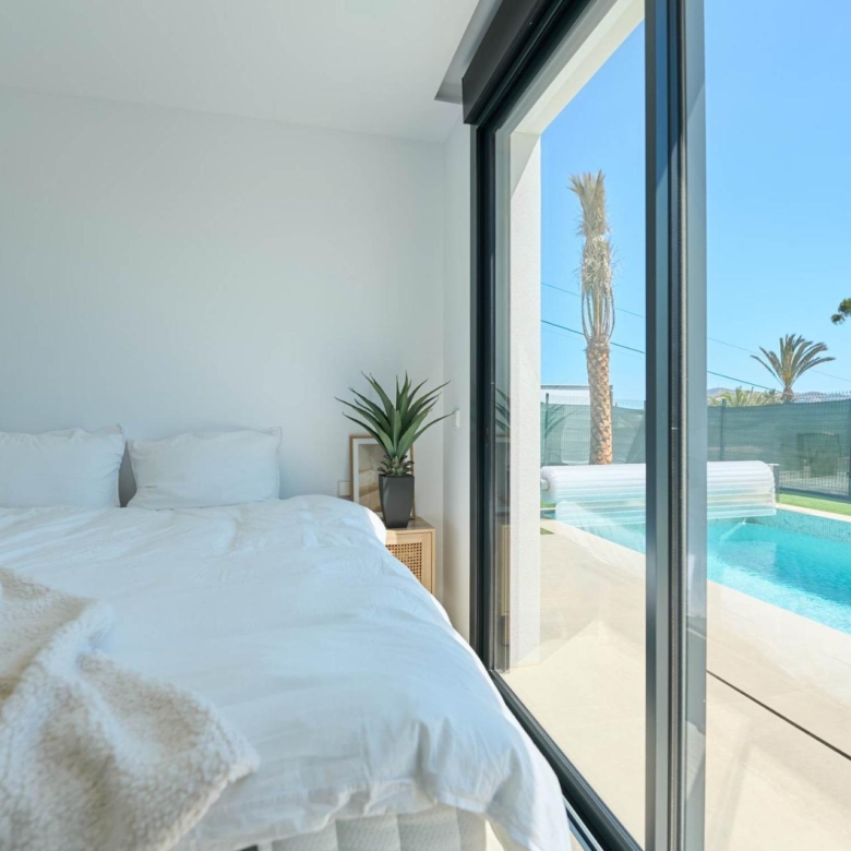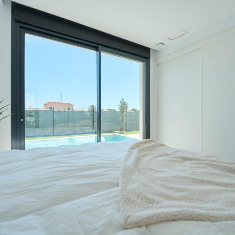 Conçu dans le but d’apporter le maximum d’harmonie et d’équilibre nécessaire à une parfaite récupération du corps et de l’esprit. Grâce à de grandes fenêtres allant du sol au plafond, la chambre principale a un accès direct à la piscine et au jardin, ce qui apporte le confort et la détente nécessaires à un bon repos.