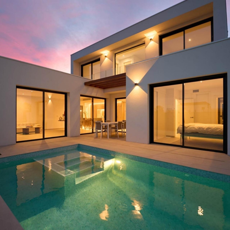Nouvelle urbanisation privée de 12 villas avec leur propre piscine et jardin, située dans l’une des zones les plus exclusives de la Costa Blanca, Alfaz del Pí.