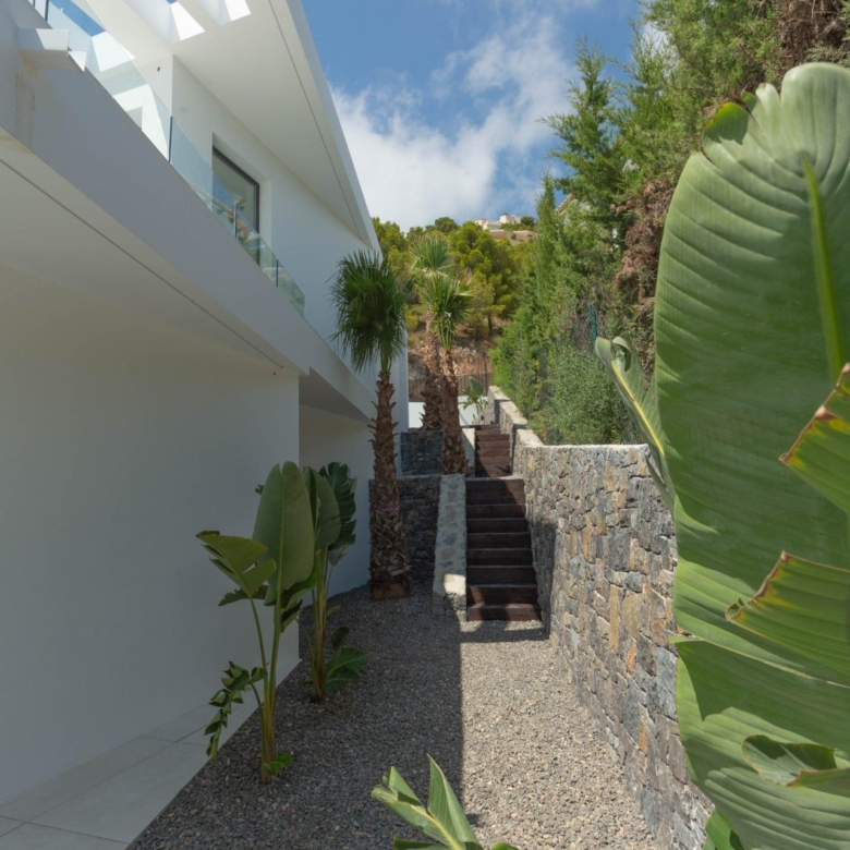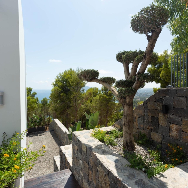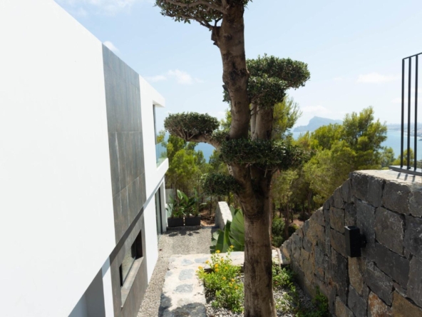 La maison est située dans la partie supérieure du terrain, offrant les meilleures vues sur la mer Méditerranée et sur Altea. La partie inférieure du terrain est couverte de végétation, améliorant la vue d’ensemble, amplifiant la portée et ajoutant la connexion avec la mer et la nature de la montagne.