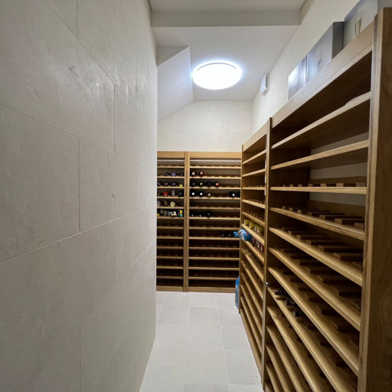 La distribution de la villa est la suivante : Le rez-de-chaussée comprend un salon/salle à manger très spacieux avec une cheminée, une télévision, une cuisine semi-ouverte, une chambre à coucher avec une salle de bain attenante, des toilettes pour invités et un débarras. Le premier étage comprend trois chambres à coucher avec salles de bain attenantes et une galerie. Au sous-sol, nous trouverons un espace SPA avec Hammam, Jacuzzi, douche, petite cuisine, salle de bain, et des locaux techniques. Une zone avec un son spécial home cinéma, une salle de loisirs, une cave à vin, et une chambre avec une salle de bain en-suite.