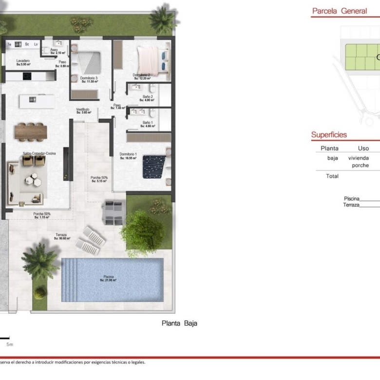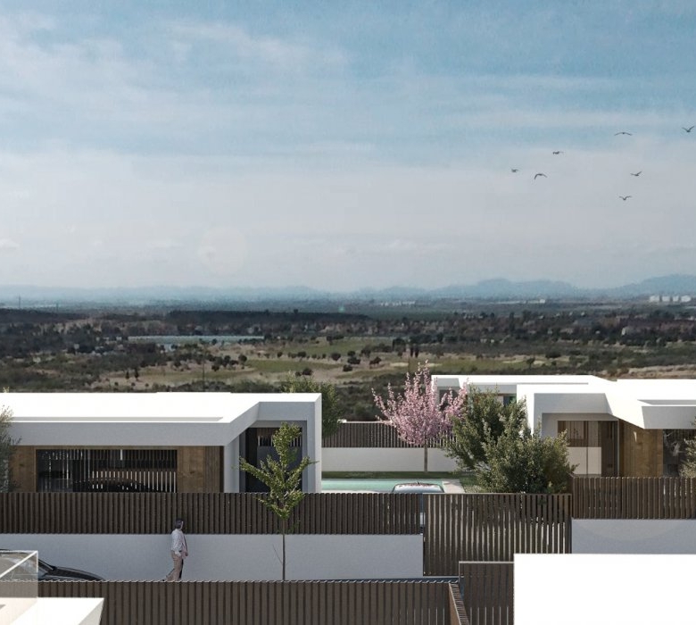 Des villas de plain-pied construites sur des parcelles de 300 m2 avec 3 chambres, 2 salles de bain et une piscine privée avec de multiples options où la qualité est la plus élevée et où nous intégrons l’extérieur avec l’intérieur du lieu de vie.