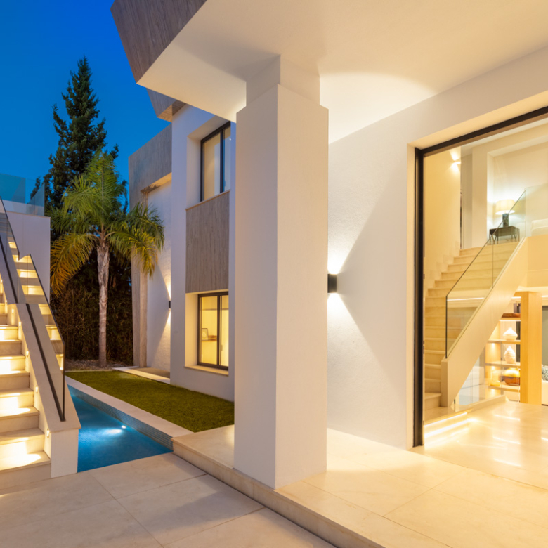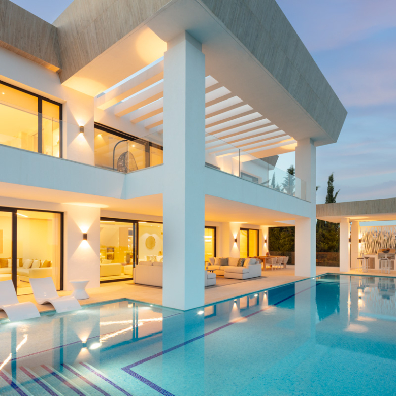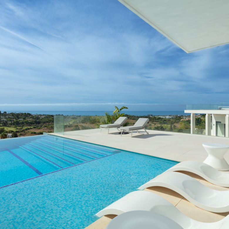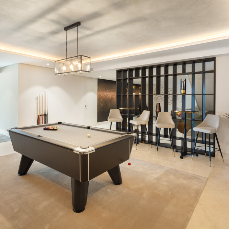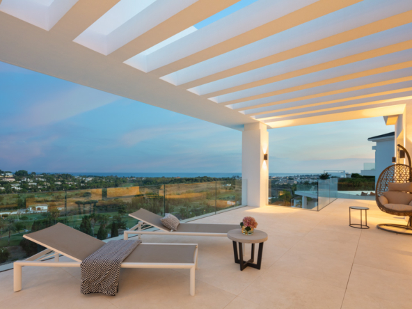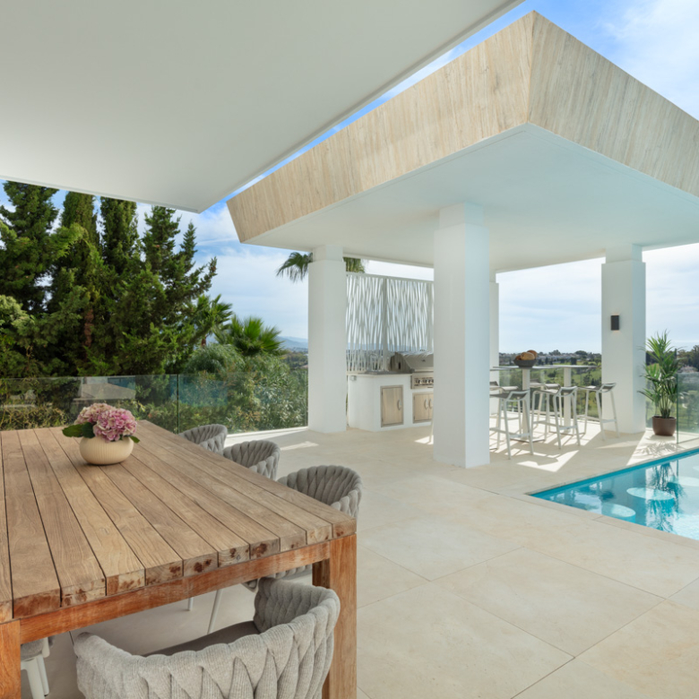 L’extérieur de la villa est soigneusement conçu pour offrir un espace de détente et de divertissement. Elle dispose d’un jardin privé, parfait pour profiter du climat méditerranéen. La terrasse et le solarium offrent des espaces supplémentaires pour se détendre en plein air, tandis que la pergola offre un espace ombragé idéal pour les après-midis ensoleillés. La piscine privée est un véritable oasis, complétée par un jacuzzi qui ajoute une touche de luxe supplémentaire.