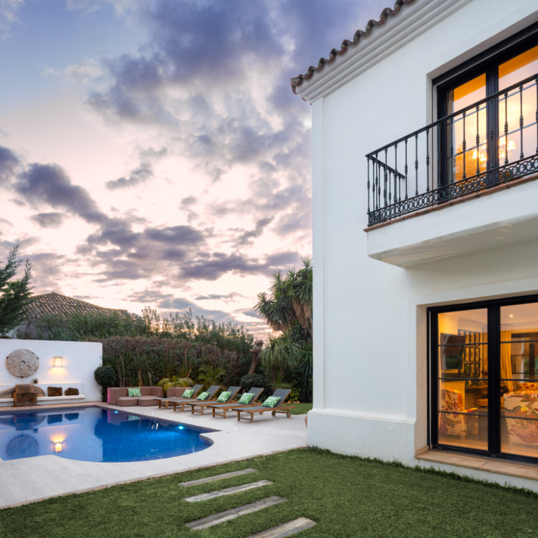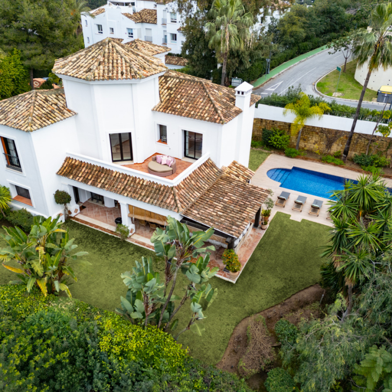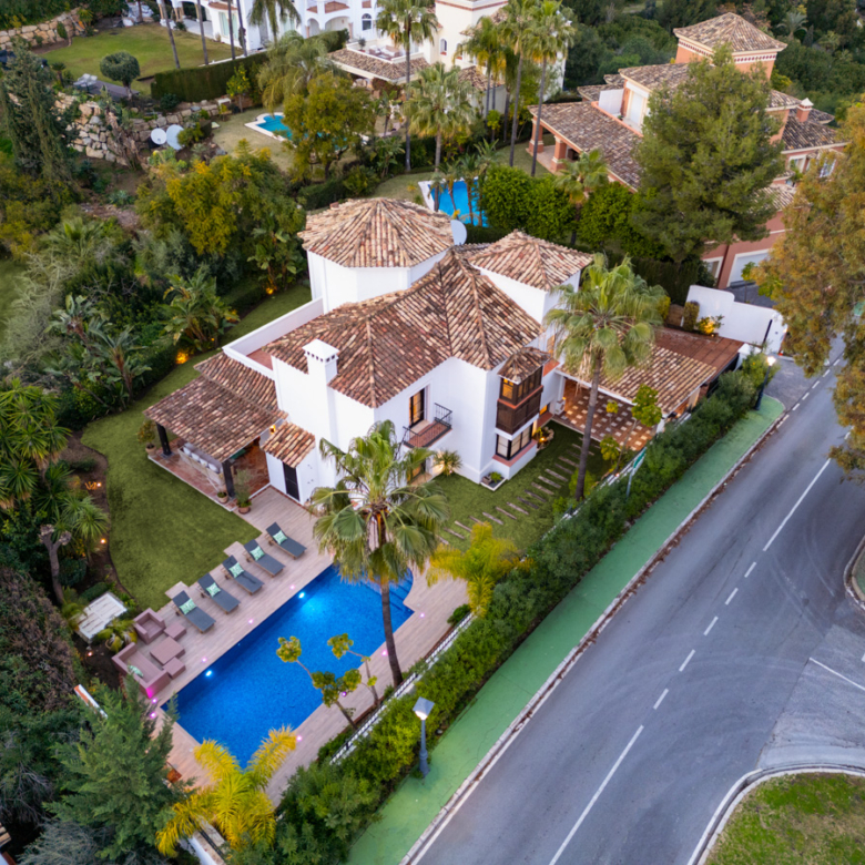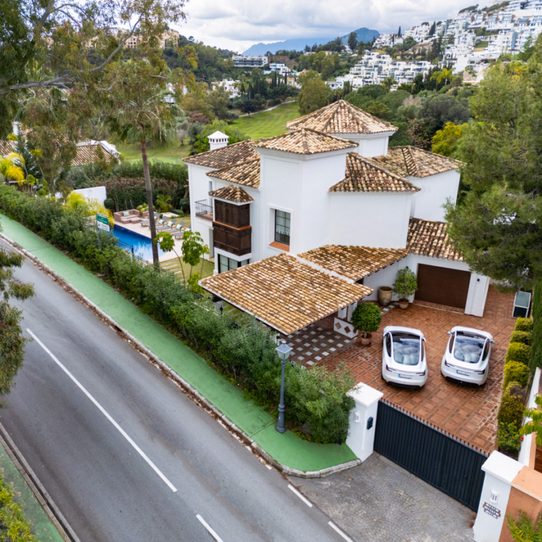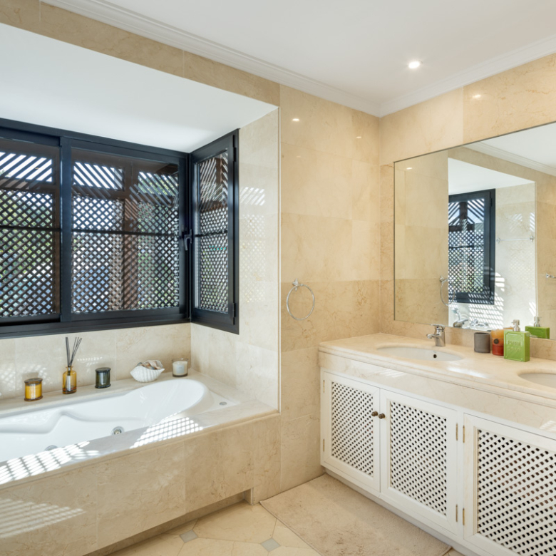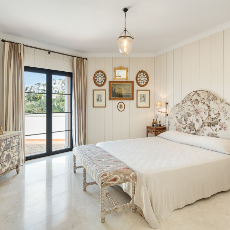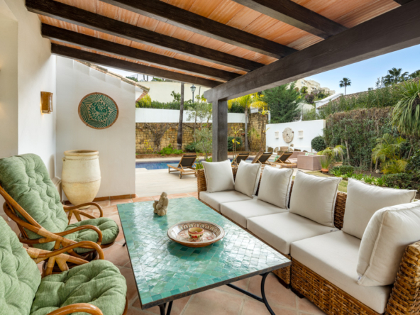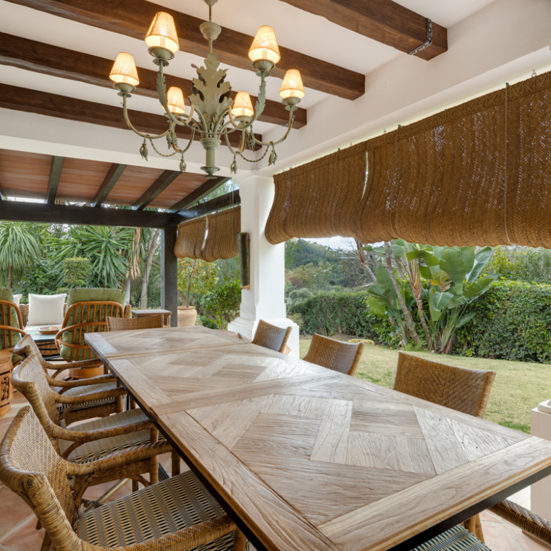 L’extérieur de la villa est conçu pour maximiser le plaisir du climat méditerranéen. Il se distingue par la présence d’un jardin privé, idéal pour des moments de détente en plein air. La terrasse est un espace parfait pour profiter de repas en plein air ou simplement contempler l’environnement naturel qui entoure la propriété. De plus, la villa dispose d’une piscine privée, offrant un oasis personnel pour se rafraîchir pendant les chaudes journées d’été. Le design extérieur complète parfaitement le style architectural de la villa, créant une harmonie visuelle qui s’intègre au paysage de Benahavís.