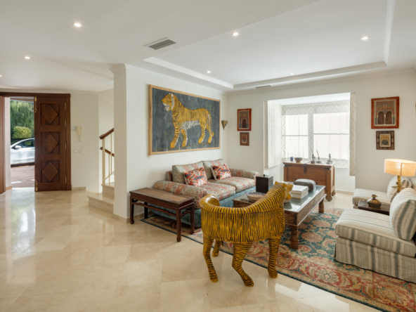 Située dans la zone exclusive de Benahavís, cette villa offre une opportunité unique de profiter d’un cadre privilégié. Avec un design qui allie élégance et fonctionnalité, la propriété se présente comme une option idéale pour ceux qui recherchent une maison dans un environnement calme et sophistiqué. La villa dispose de quatre chambres et cinq salles de bains, offrant un espace vaste et confortable pour toute la famille. L’attention portée aux détails et la qualité des finitions sont évidentes dans chaque recoin de la maison, assurant une ambiance chaleureuse et luxueuse.
