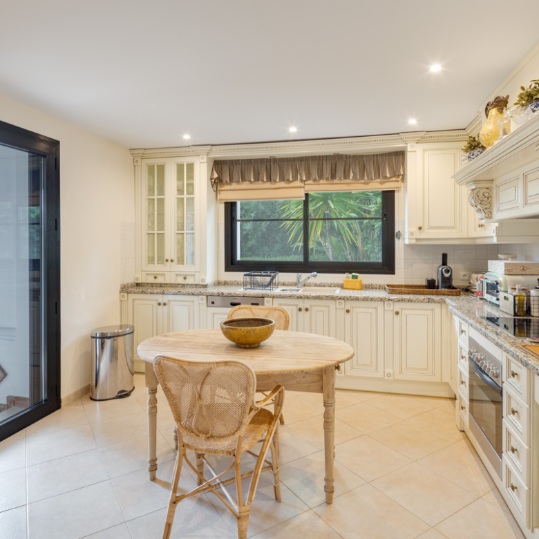 L’intérieur de la villa est soigneusement aménagé pour offrir un maximum de confort et de fonctionnalité. Les quatre chambres sont équipées de placards intégrés, offrant un vaste espace de rangement. Chacune des cinq salles de bains est conçue dans un style moderne et élégant, assurant une ambiance luxueuse et confortable. La villa comprend également un garage, offrant une solution pratique pour le stationnement et un espace de rangement supplémentaire. L’aménagement intérieur est pensé pour maximiser la lumière naturelle, créant des espaces lumineux et accueillants dans toute la maison.
