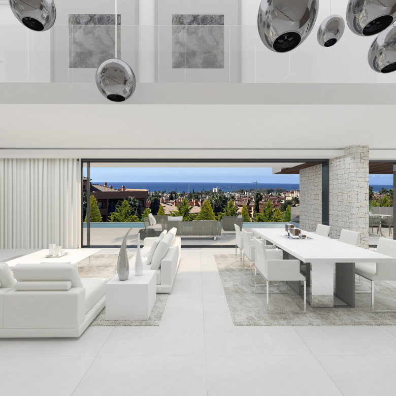 L’intérieur de la villa est conçu avec un accent sur le confort et la modernité. Elle dispose de quatre chambres et quatre salles de bains, offrant un espace vaste et fonctionnel pour toute la famille. Les sols en grès cérame apportent une touche d’élégance et de durabilité. La villa est équipée de la climatisation, de placards intégrés et d’un système domotique qui facilite le contrôle de diverses fonctions de la maison. Les appareils électroménagers haut de gamme complètent une cuisine moderne et efficace.
