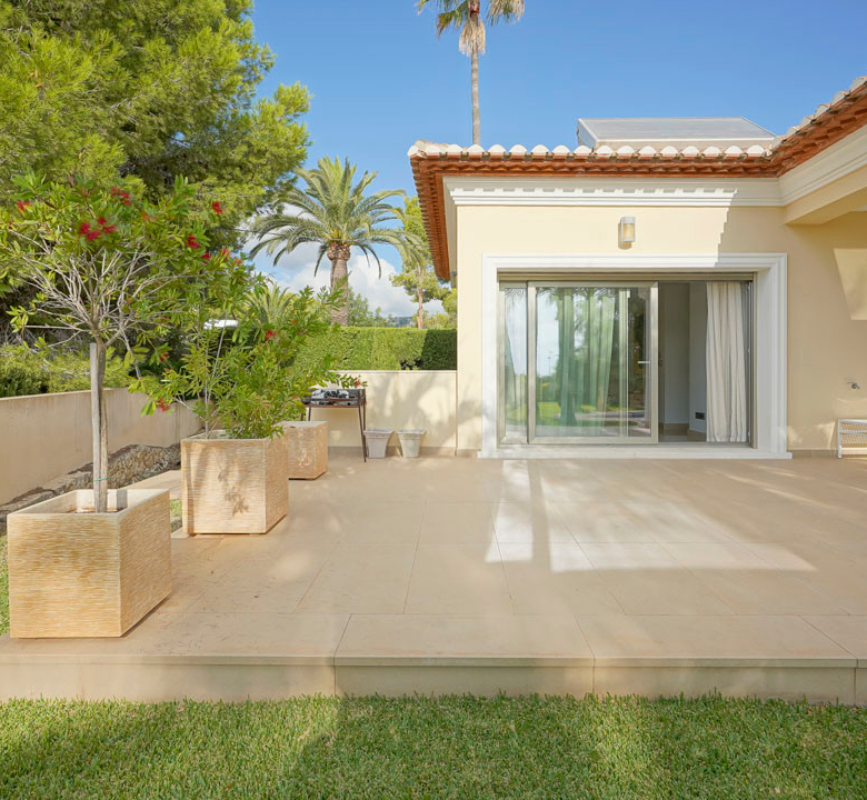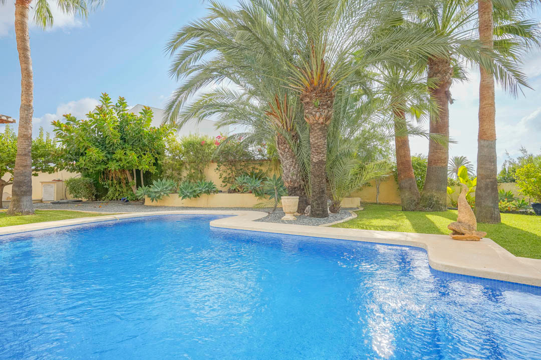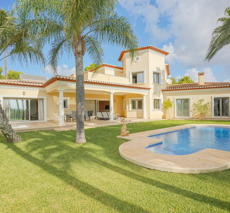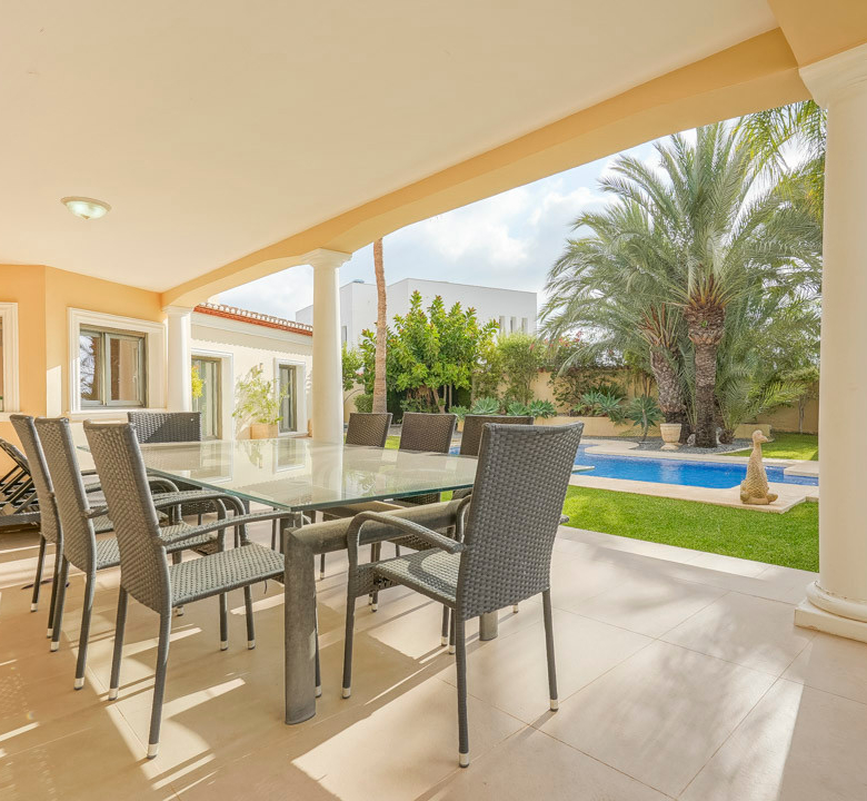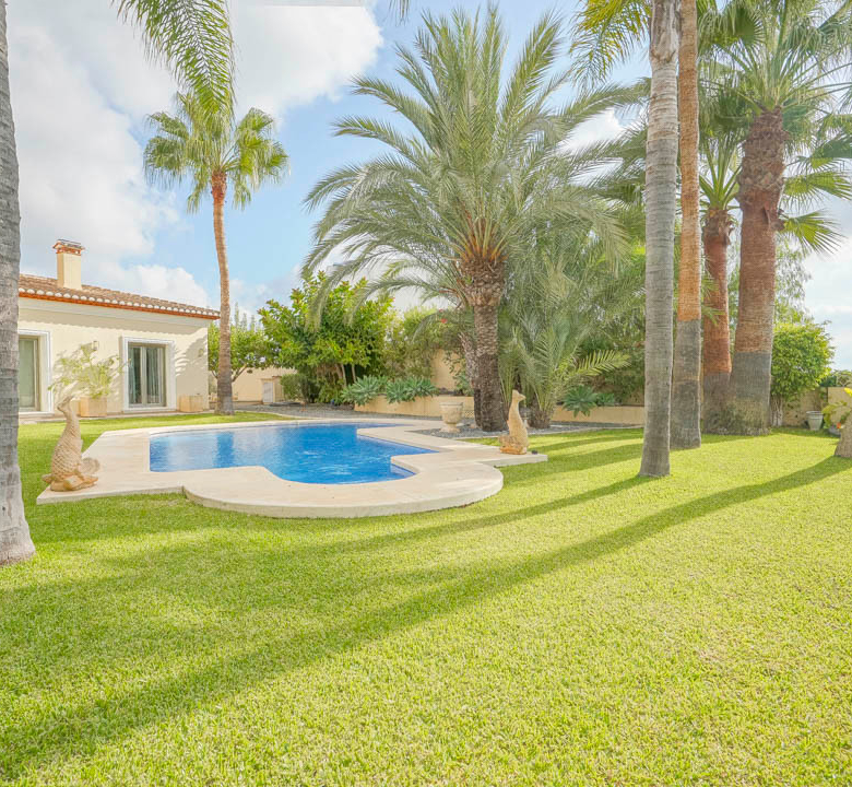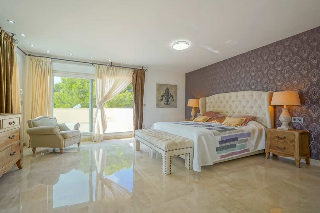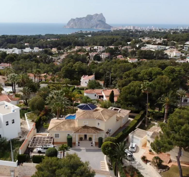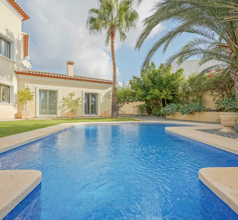 Cette villa espagnole traditionnelle est située dans un quartier calme de Benissa, à proximité de la côte. Le rez-de-chaussée comprend un salon-salle à manger spacieux, une cuisine moderne entièrement équipée et trois chambres doubles, chacune avec une salle de bains privée. La chambre principale se trouve au premier étage et dispose d’une salle de bains très spacieuse avec vue sur la mer, d’un dressing et d’une grande terrasse d’où l’on peut également profiter des magnifiques vues sur le Peñon de Ifach et la mer. Le salon et toutes les chambres du rez-de-chaussée ont un accès direct à la grande terrasse couverte grâce à des fenêtres coulissantes. Depuis la terrasse, vous avez une vue sur la grande piscine entourée d’un magnifique jardin méditerranéen avec plusieurs palmiers. De l’autre côté de la villa se trouve une grande allée avec un abri pour voiture et un espace de stationnement pour plusieurs voitures. Au sous-sol, il y a une autre buanderie et une salle de stockage. La villa est équipée d’un chauffage au sol, de l’air conditionné, de volets, d’un système d’irrigation automatique et de panneaux solaires. En moins de 5 minutes, vous atteignez la côte de Benissa où il y a plusieurs plages idylliques. En moins de 10 minutes, vous atteignez le village portuaire touristique de Moraira et en 15 minutes, vous êtes dans la ville balnéaire animée de Calpe.
