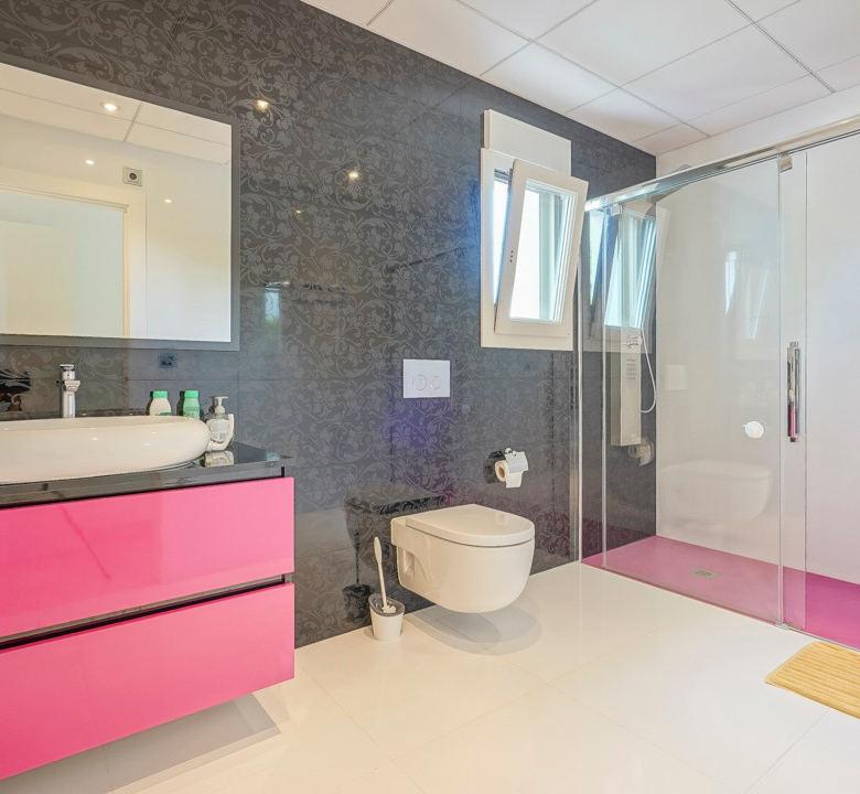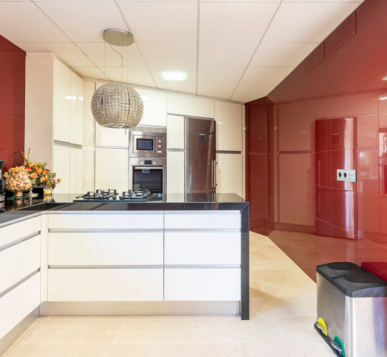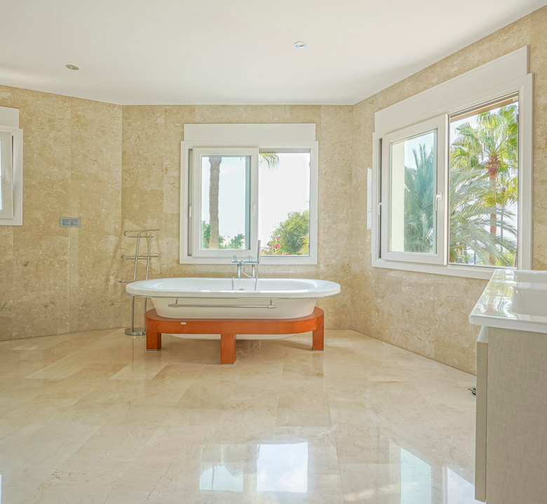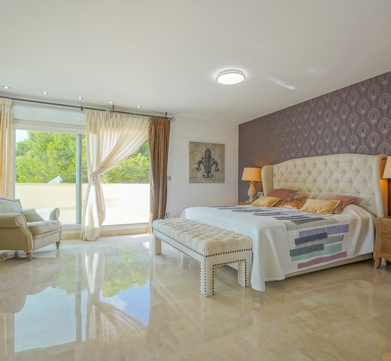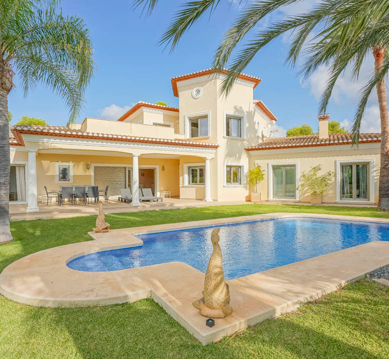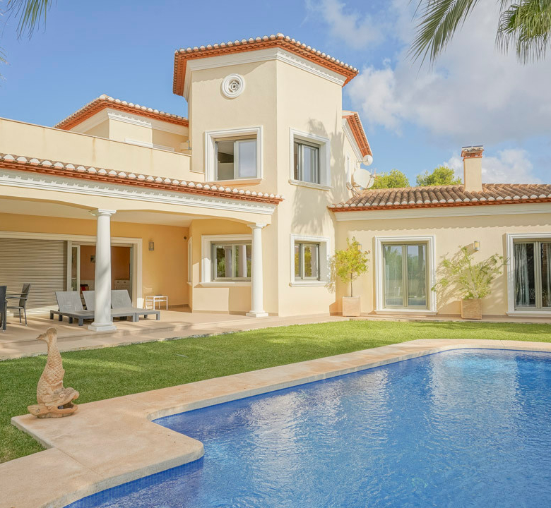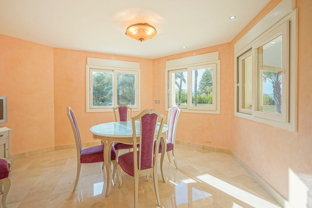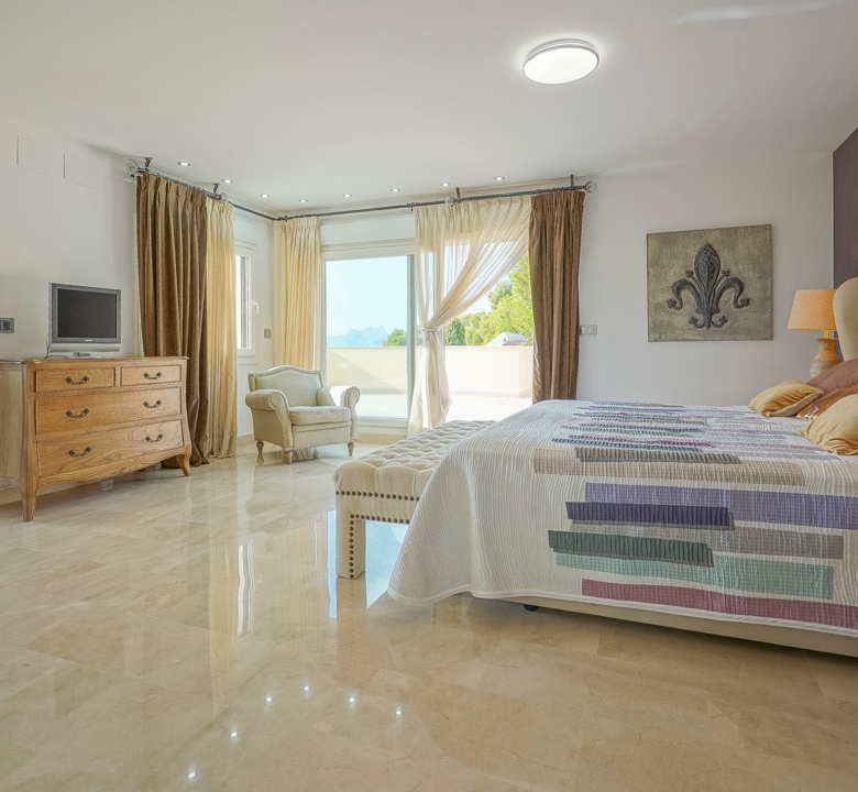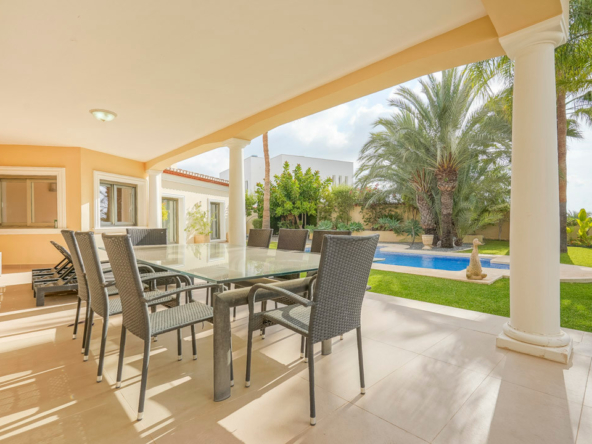 Cette villa espagnole traditionnelle est située dans un quartier calme de Benissa, à proximité de la côte. Le rez-de-chaussée comprend un salon-salle à manger spacieux, une cuisine moderne entièrement équipée et trois chambres doubles, chacune avec une salle de bains privée. La chambre principale se trouve au premier étage et dispose d’une salle de bains très spacieuse avec vue sur la mer, d’un dressing et d’une grande terrasse d’où l’on peut également profiter des magnifiques vues sur le Peñon de Ifach et la mer. Le salon et toutes les chambres du rez-de-chaussée ont un accès direct à la grande terrasse couverte grâce à des fenêtres coulissantes. Depuis la terrasse, vous avez une vue sur la grande piscine entourée d’un magnifique jardin méditerranéen avec plusieurs palmiers. De l’autre côté de la villa se trouve une grande allée avec un abri pour voiture et un espace de stationnement pour plusieurs voitures. Au sous-sol, il y a une autre buanderie et une salle de stockage. La villa est équipée d’un chauffage au sol, de l’air conditionné, de volets, d’un système d’irrigation automatique et de panneaux solaires. En moins de 5 minutes, vous atteignez la côte de Benissa où il y a plusieurs plages idylliques. En moins de 10 minutes, vous atteignez le village portuaire touristique de Moraira et en 15 minutes, vous êtes dans la ville balnéaire animée de Calpe.