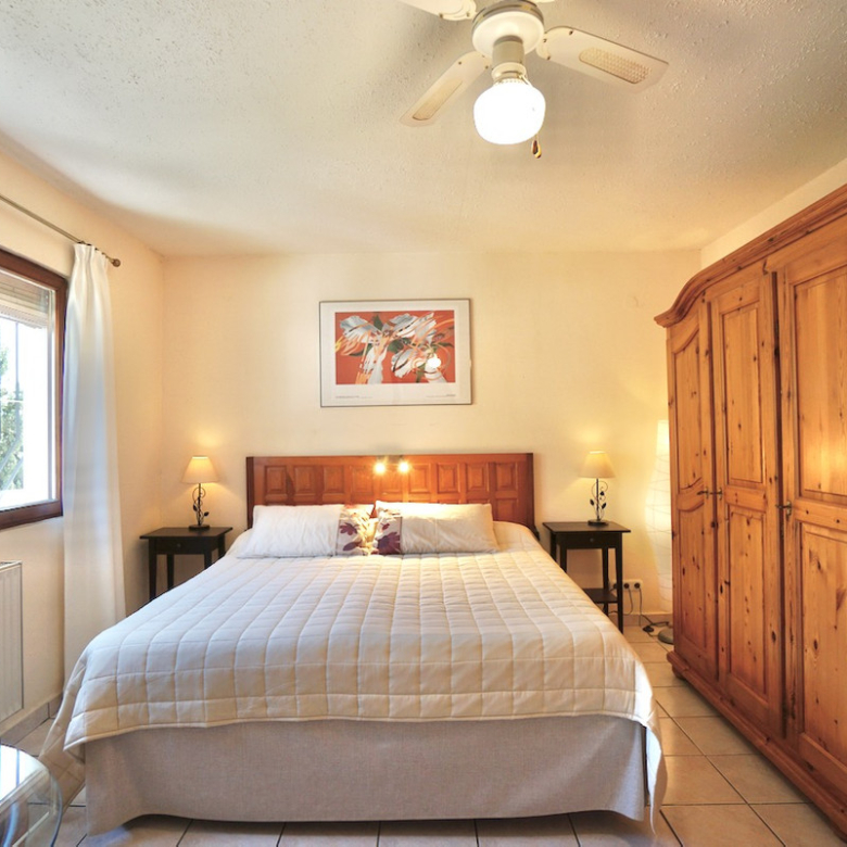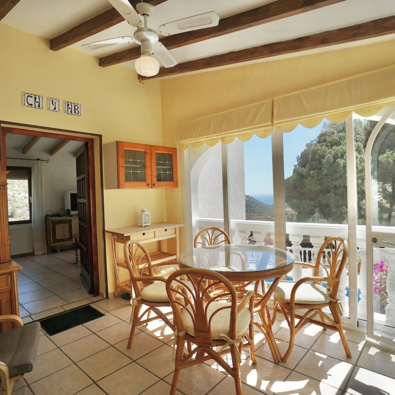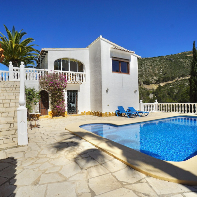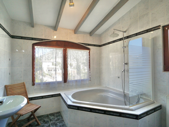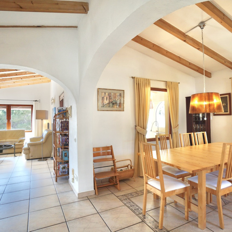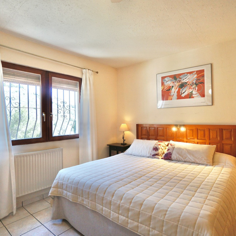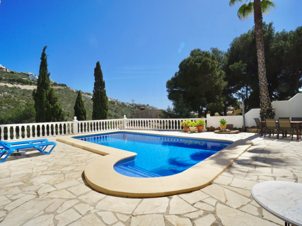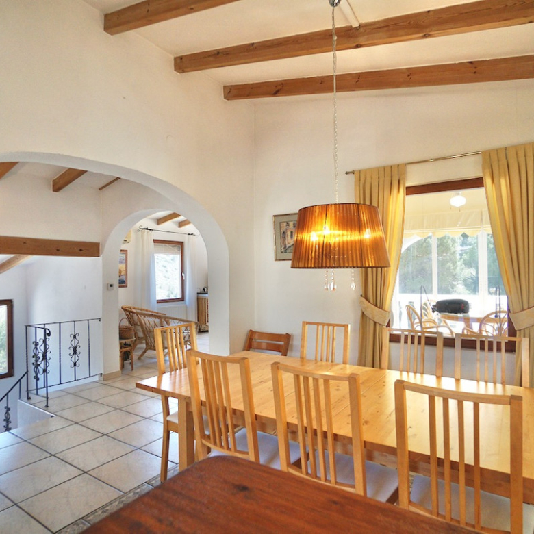 Terrain surélevé orienté sud avec vue dégagée sur la vallée et la merPiscine privée 8 x 4 m de style romain avec grande terrasse ensoleilléeQuatre chambres, dont suite parentale avec dressing/bureauDétails traditionnels : poutres en bois et cheminéeClimatisation, chauffage central, isolation et double vitragePanneaux solaires de 4 kW pour une meilleure efficacité énergétiqueStationnement sur la parcelle et coin barbecue intégréEmplacement calme à quelques minutes des commerces, sentiers de randonnée et plages de Moraira
