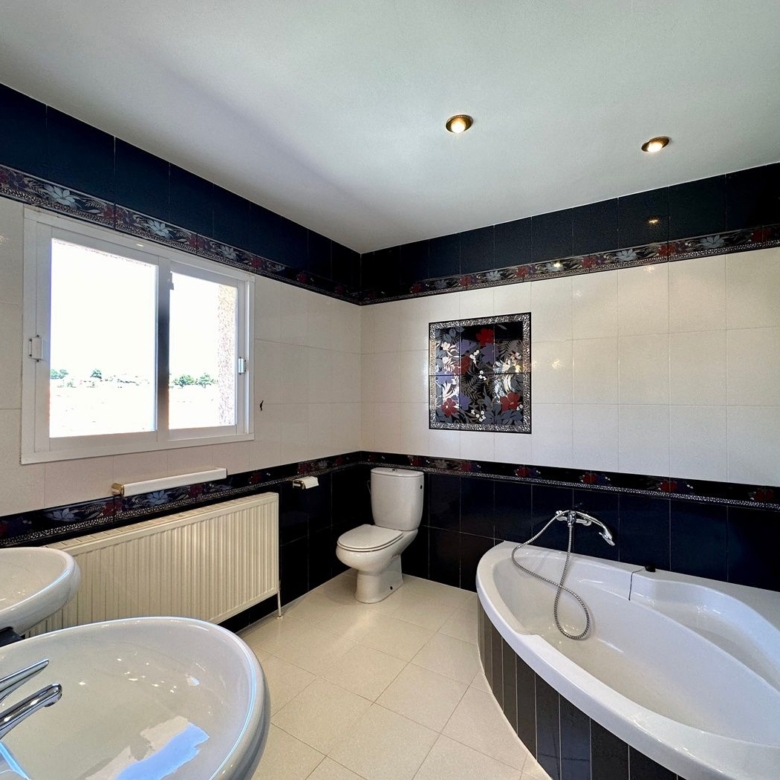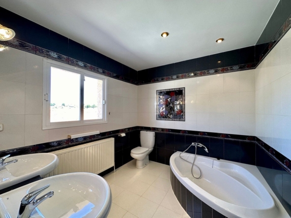 La propriété, qui est proposée non meublée, a été récemment peinte. Il se compose de 280 m² répartis sur deux niveaux reliés par un escalier intérieur. Il dispose de chambres spacieuses, vue sur la mer, climatisation, chauffage central, garage, parking couvert, piscine privée 10×5, douche extérieure, portail automatique et est situé sur un terrain clos de 1 050 m².