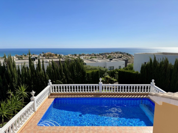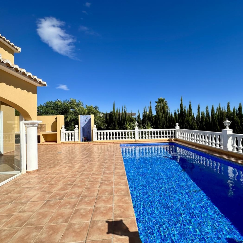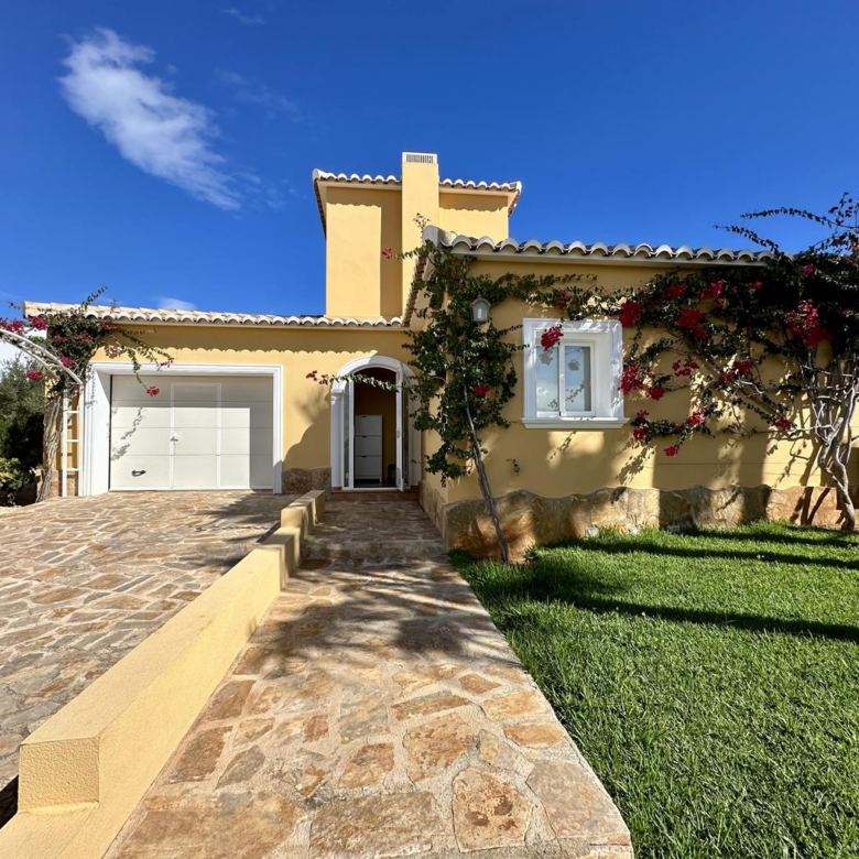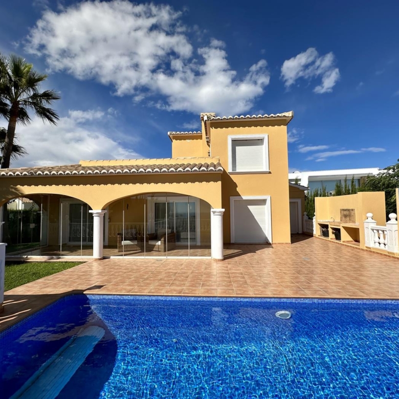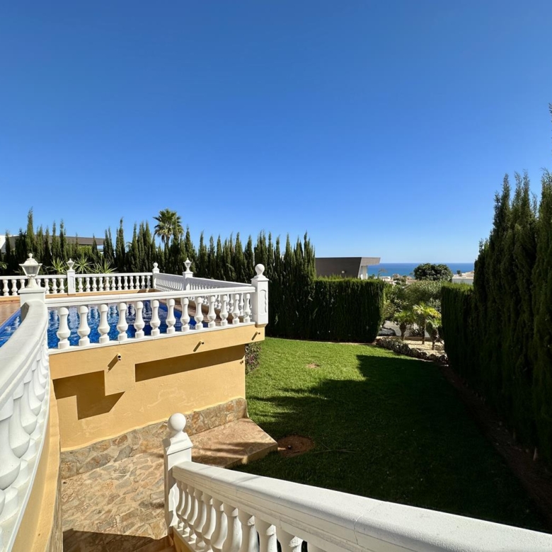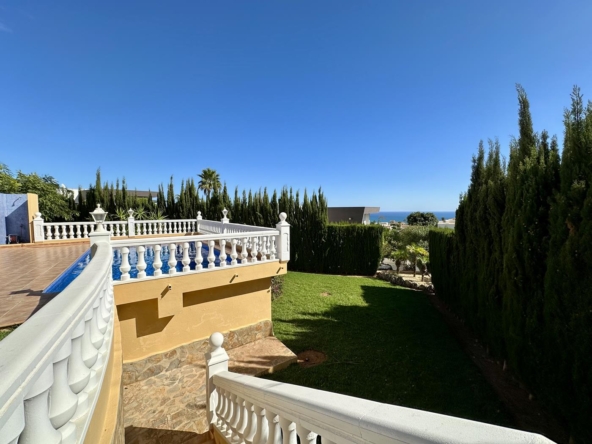 Villa avec jardin, piscine privée et vue sur la mer à vendre dans l’urbanisation Cumbre del Sol, Benitachell, Alicante, Costa Blanca, Espagne.