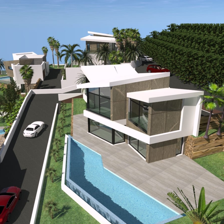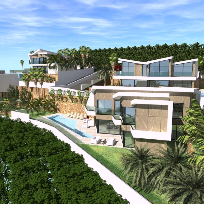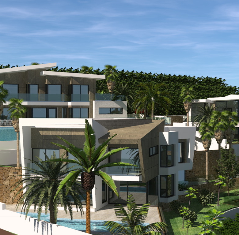 4 villas modernes de nouvelle construction avec vue sur le Peñon, la baie et Puerto Blanco à vendre à Calpe.