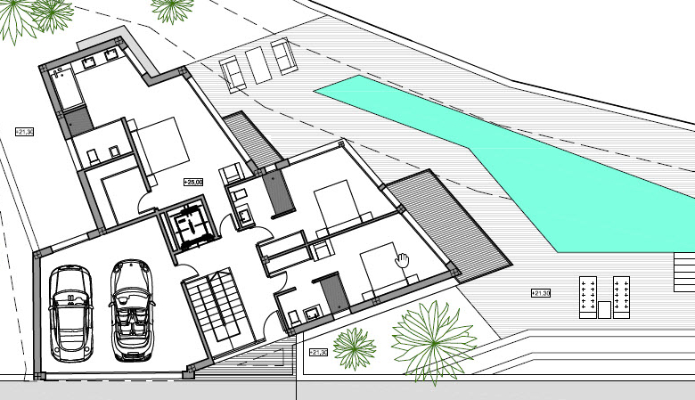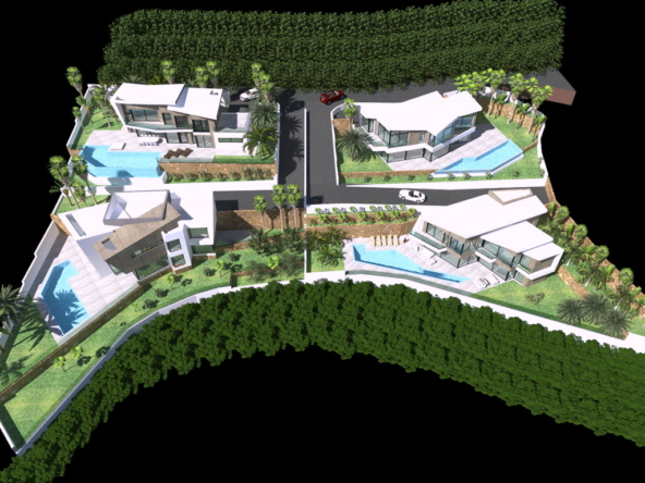Les 4 villas ont approximativement la même surface construite et la même disposition, plus d’informations sur les 4 villas séparément peuvent être fournies sur demande. Dans les images, vous trouverez les plans de construction et les surfaces d’une villa.