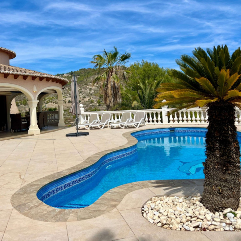 À la lisière d’une zone naturelle protégée, dans une oasis de calme et avec de magnifiques vues, vous trouverez cette villa de style espagnol traditionnel. La maison se compose de 2 niveaux et peut parfaitement être utilisée comme 2 unités de logement distinctes. Vous pouvez accéder à la villa par le portail coulissant automatique ou par l’entrée pour piétons séparée. L’entrée dispose d’un hall spacieux, où les magnifiques arches de l’escalier attirent immédiatement l’attention. Depuis l’entrée, il y a un accès direct à l’espace de vie et à la cuisine d’une part, et à la zone nuit d’autre part. La chambre principale, dotée d’un dressing, possède une salle de bain en suite. Cette luxueuse salle de bain est équipée d’une grande baignoire balnéo et offre une belle vue sur la nature. De plus, il y a une deuxième chambre et salle de bain. Depuis le salon spacieux et lumineux, divisé en salle à manger et salon avec cheminée, vous avez déjà une vue sur le célèbre Ifach de Calpe ! De ce côté de la villa se trouvent également la terrasse couverte et la piscine, entourées de plantes tropicales et équipées d’une douche extérieure et d’un coin détente. Le rez-de-chaussée, accessible par un escalier extérieur ou intérieur, bénéficie de la terrasse étendue, d’un jardin privé et d’espaces de rangement et de buanderie, et comprend l’appartement séparé. Celui-ci dispose d’un coin salon, d’une cuisine ouverte, de deux chambres et de deux salles de bain. Il y a une entrée privée et l’appartement peut aussi être isolé de l’étage supérieur. Même ici, il est agréable de profiter de la confidentialité et de la vue ! Une grande attention a été portée à la qualité et aux économies d’énergie. Par exemple, la terrasse extérieure a été refaite. Grâce au chauffe-eau solaire, la maison est très économique en consommation. En d’autres termes : cette magnifique villa est prête à emménager et à profiter du calme et du soleil.