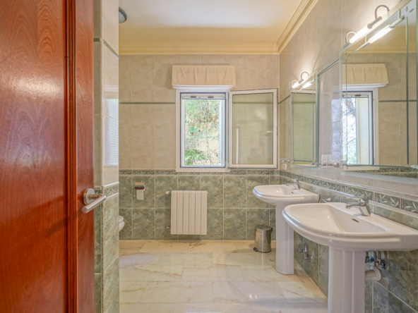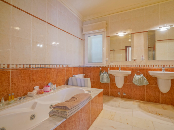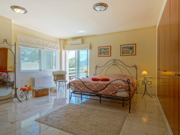 La villa est située sur un terrain de 2070 m2 et a une surface construite de 404 m2. La villa a été construite en 2004 par les propriétaires actuels. Par un portail automatique, vous entrez dans une grande allée où se trouve un double garage sous la villa. Après quelques marches, vous atteignez la porte d’entrée et entrez dans une cage d’escalier spacieuse avec des toilettes pour les invités. Depuis le hall, on accède à un grand salon-salle à manger où plusieurs fenêtres coulissantes donnent accès à la terrasse au bord de la piscine. La cuisine est adjacente au salon et dispose également d’un accès direct à la terrasse. Les étages supérieurs se composent de trois chambres très spacieuses, dont l’une dispose d’une salle de bains en suite. Il y a également une salle de bains séparée. Toutes les chambres sont équipées d’armoires encastrées, de l’air conditionné et d’un accès à un grand balcon d’où l’on peut profiter d’une vue magnifique. Au sous-sol, en plus d’un garage spacieux, il y a aussi une buanderie et une très grande pièce qui peut être utilisée selon vos propres besoins. En outre, la villa dispose d’une troisième salle de bains près de la piscine. La villa est équipée de radiateurs, de l’air conditionné, de double vitrage, d’un système d’alarme et de volets. De plus, la piscine est chauffée.