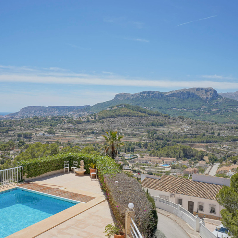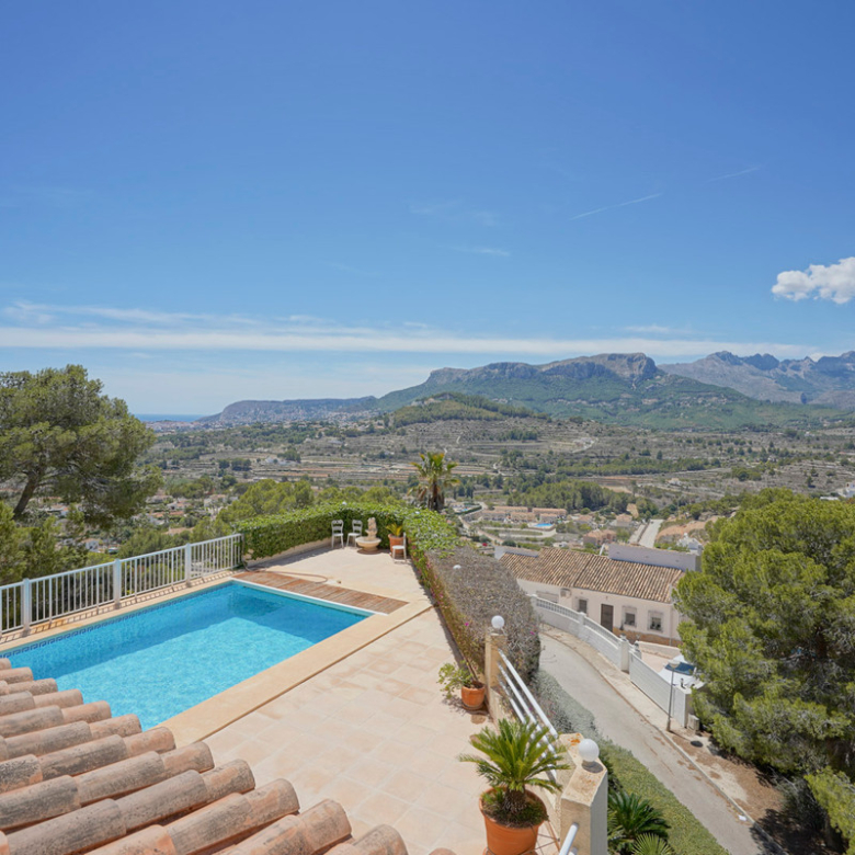 Cette belle villa est située dans le quartier calme de La Empedrola à Calpe et offre des vues panoramiques fantastiques. Au sud, vous avez une vue sur la magnifique côte de Calpe avec sa mer bleue azur et entourée d’un paysage vallonné, à l’ouest, vous bénéficiez d’une vue à couper le souffle sur l’impressionnante chaîne de montagnes Sierra de Bernia et la montagne boisée Sierra D’Olta, et au nord, vous avez une vue étendue sur l’intérieur des terres vallonné jusqu’au charmant village de Benissa. En moins de 10 minutes, vous pouvez rejoindre les deux grandes plages de sable de Calpe et les criques idylliques aux eaux cristallines près de la magnifique côte de Benissa. Le centre-ville de Calpe, où vous trouverez toutes les commodités, est également à 10 minutes.