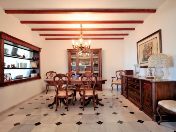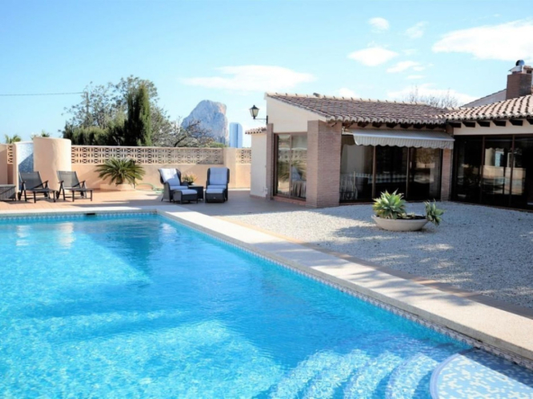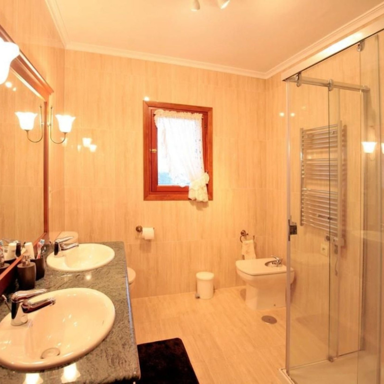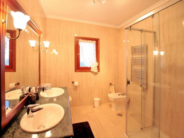 Belle villa familiale de luxe à vendre, dans l’une des meilleures urbanisations de Calpe. La villa est à 10 minutes à pied de la ville de Calpe et à 5 minutes à pied de la gare routière locale. La propriété est située dans l’un des quartiers les plus populaires de Calpe, en raison de sa proximité avec tout, alors que nous avons le sentiment de vivre à la campagne. Au rez-de-chaussée, nous trouvons un grand hall, deux chambres à coucher, une salle de bains, une grande cuisine avec buanderie et un grand salon avec trois sections séparées. Par un escalier en marbre et en bois, nous accédons à l’étage supérieur composé de trois grandes chambres et de deux salles de bains, dont une avec salle de bains. À cet étage, nous trouvons également un petit solarium. De presque toutes les fenêtres de la maison, nous avons une vue magnifique sur la mer et le rocher d’Ifach. Il y a le chauffage central et la climatisation dans toute la maison. Dans la maison principale, nous trouvons également une cave authentique, un garage et un parking couvert. En plus des 5 chambres et 3 salles de bain, il y a aussi une petite maison d’hôtes séparée comprenant barbecue, lit, salon, cuisine et salle de bain. La parcelle a un grand jardin, une belle terrasse avec une grande piscine (5×10) et une zone avec des arbres fruitiers.