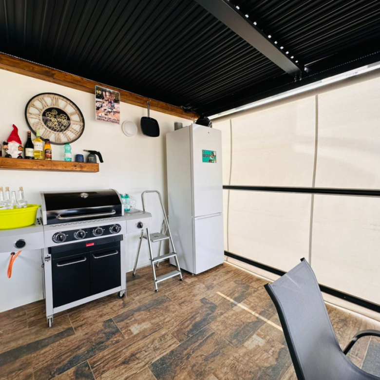 Le terrain s’étend sur 1 235 mètres carrés et est orné de beaux arbres fruitiers, ainsi que d’un puits d’eau naturel, ce qui ajoute une touche de durabilité et d’authenticité à l’environnement. De plus, la villa est équipée de panneaux solaires qui assurent une efficacité énergétique optimale. Chacun des deux appartements dispose d’1 poêle à granulés pour maintenir le confort à tout moment.