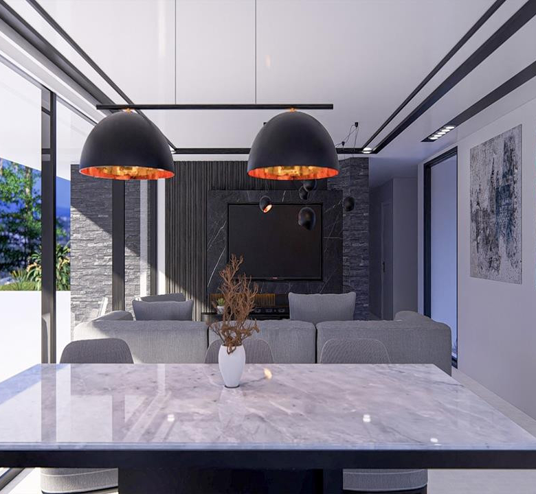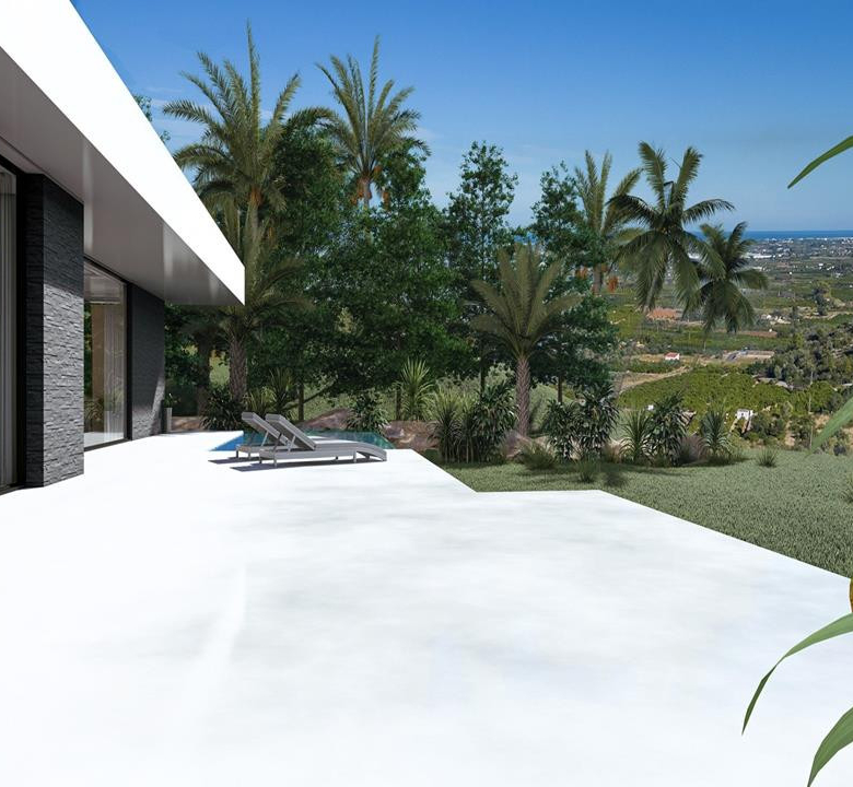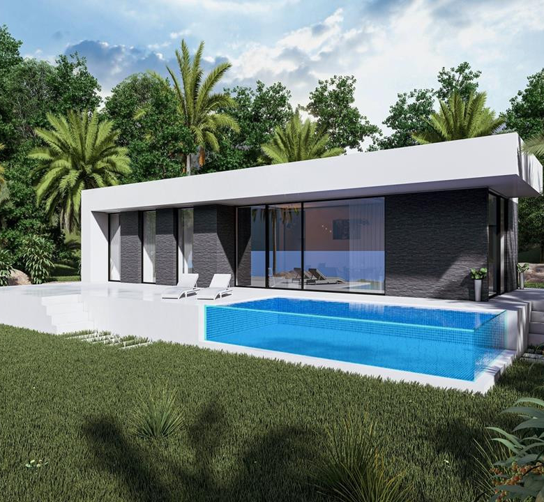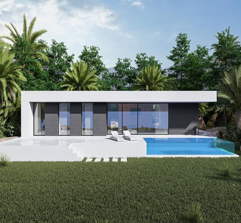Villa Style Ibiza Extended – le prix comprend le terrain, la construction de la villa de 215 m2, une piscine de 32 m2 avec 20 m2 de terrasse communicante.