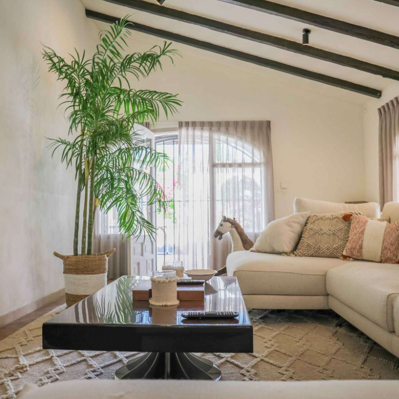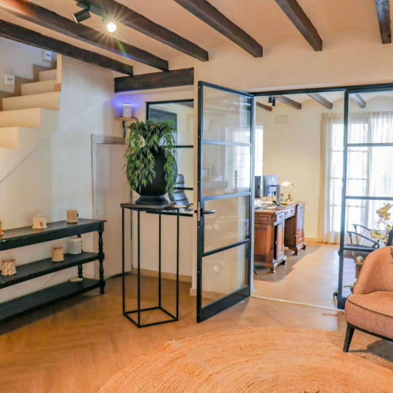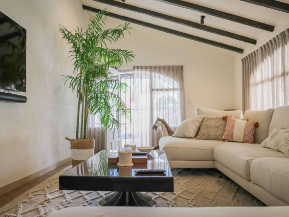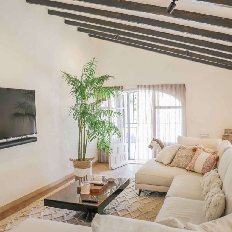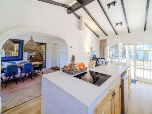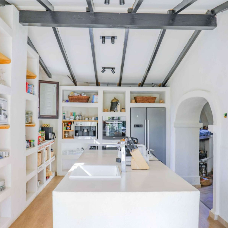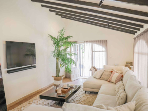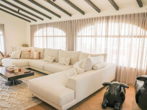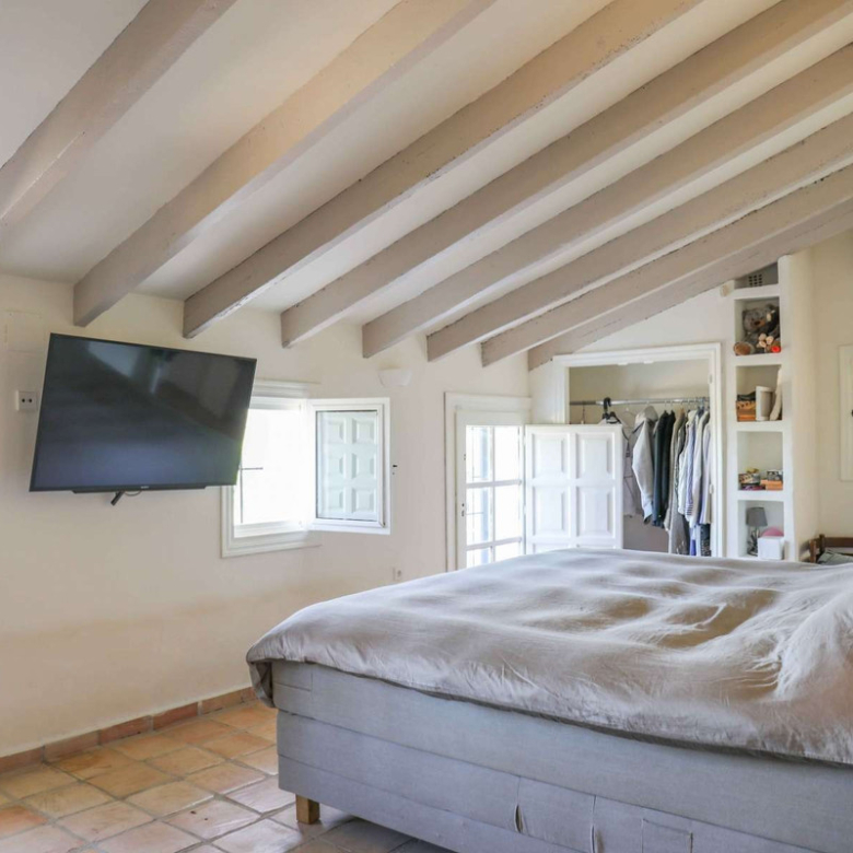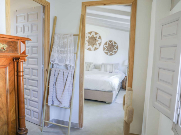 Montez l’élégant escalier jusqu’au niveau supérieur, où vous attend la somptueuse suite principale, dotée d’un dressing et d’une salle de bains privative. La terrasse exclusive de la suite offre une vue imprenable sur la montagne emblématique du Montgó.
