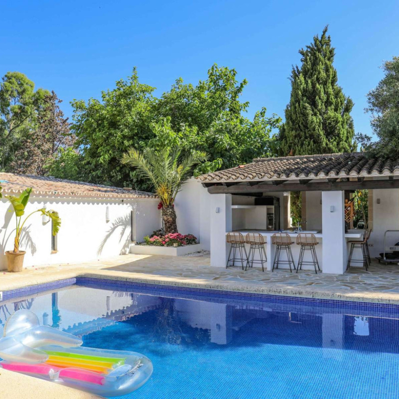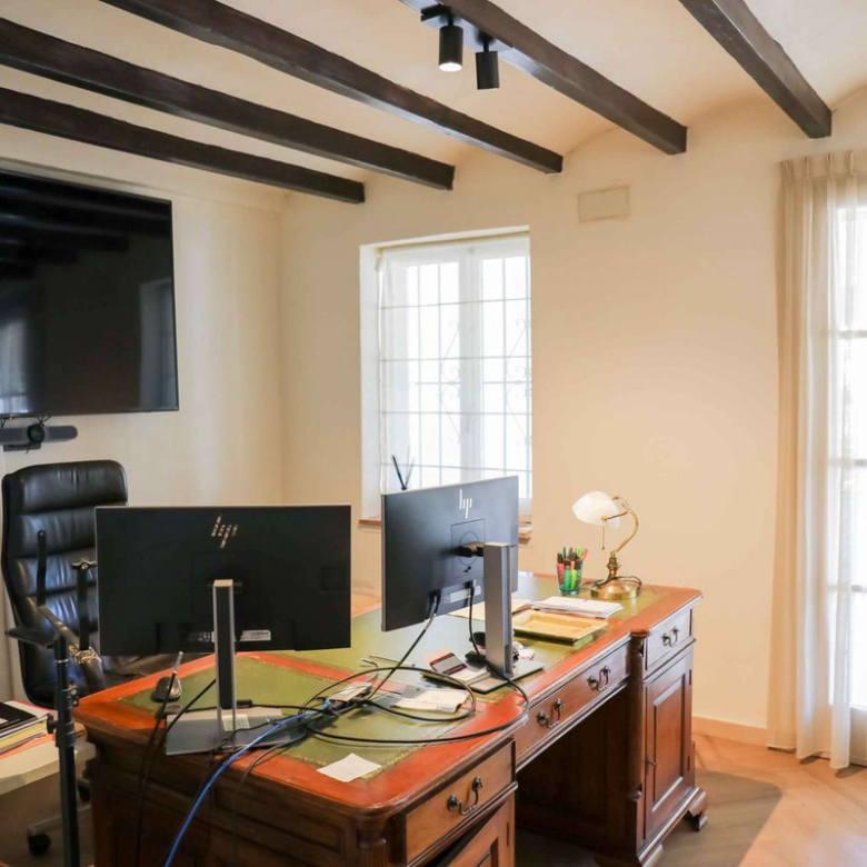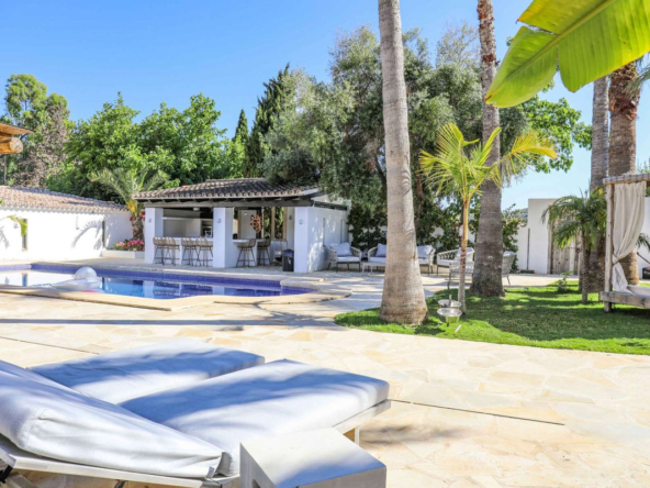 À l’extérieur, le terrain est une véritable retraite. De vastes terrasses, une piscine généreuse et des espaces de détente accueillants créent un cadre idyllique pour les loisirs en plein air. Une cuisine extérieure entièrement équipée est parfaite pour organiser des rassemblements mémorables, et un sauna à venir viendra bientôt renforcer l’attrait de la propriété pour le bien-être.Les autres points forts sont la climatisation par zone, un grand parking et un garage spacieux pouvant accueillir trois voitures.