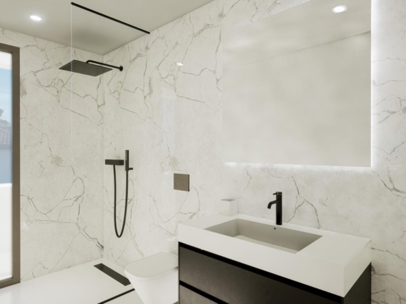 Villa de luxe indépendante à haute performance énergétique sur 2 niveaux. Elle comprend 4 chambres et 3,5 salles de bains. De grandes fenêtres du sol au plafond vous permettent de profiter de la magnifique vue sur la mer et de la lumière naturelle qui inonde tous les coins de la maison.