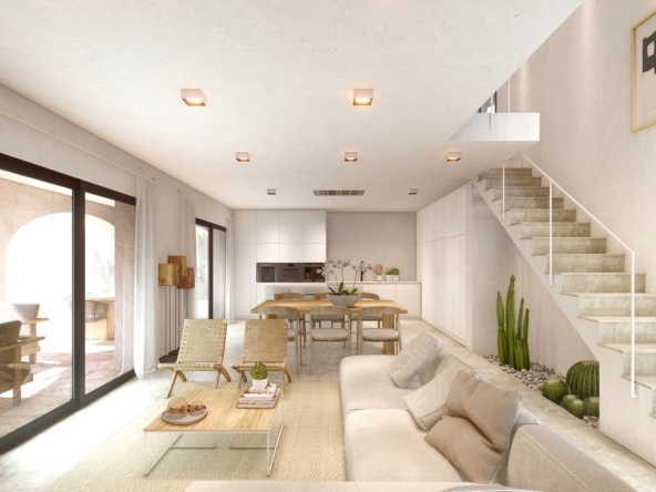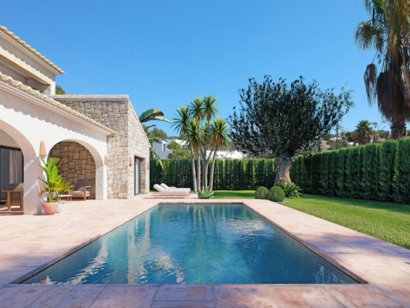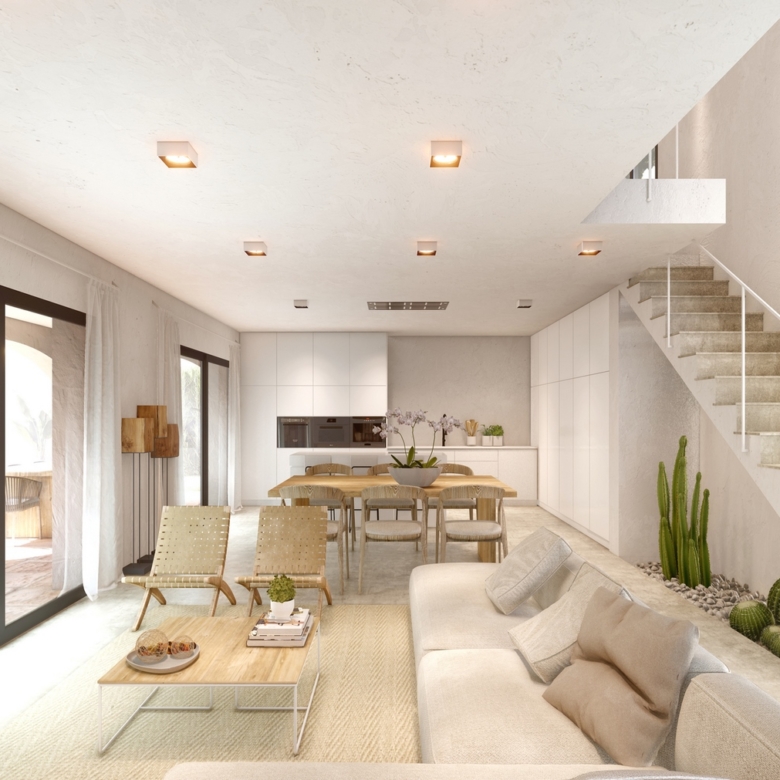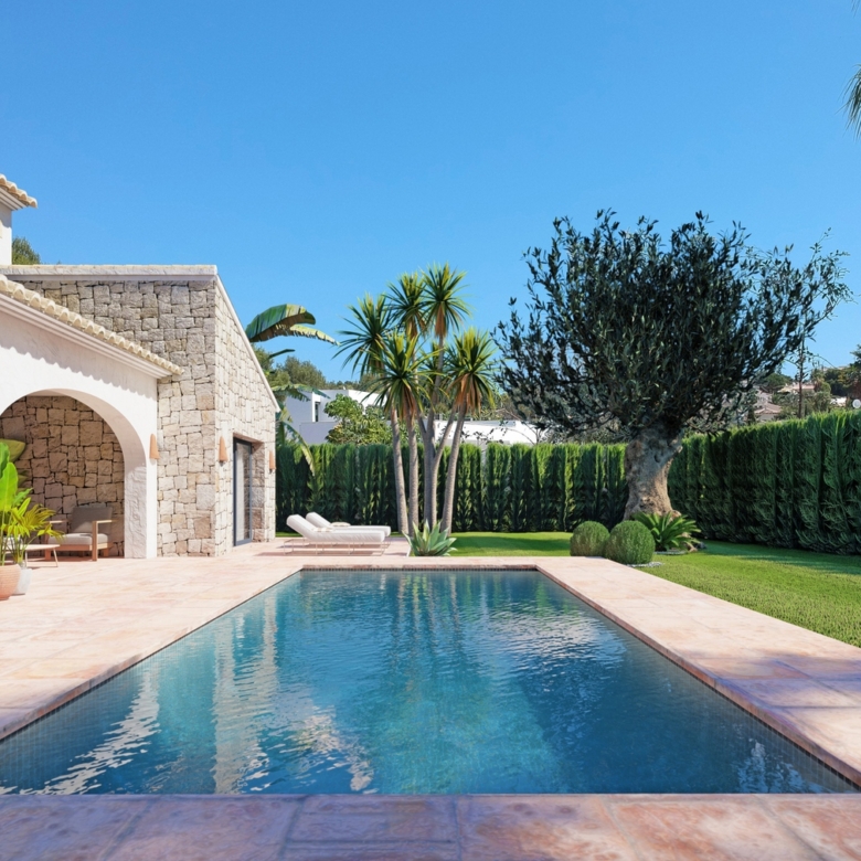 Villa de nouvelle construction à vendre à Javea dans l’urbanisation de La Cala. Son emplacement dans la forêt de pins, sur la route menant au phare de Cao de la Nao, correspond parfaitement à l’ambiance chaleureuse, accueillante et rurale de ce projet. L’urbanisation La Cala dispose d’un réseau d’égouts, d’un éclairage public, d’un réseau d’eau, d’un câblage électrique souterrain et d’un réseau téléphonique souterrain, ainsi que d’un approvisionnement central en gaz.