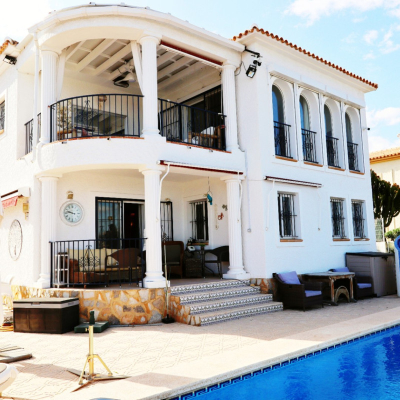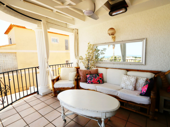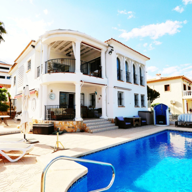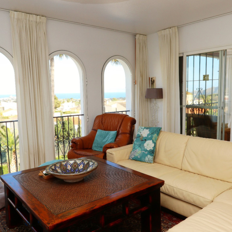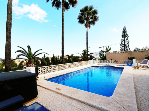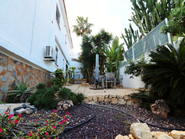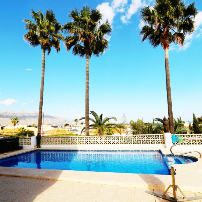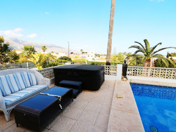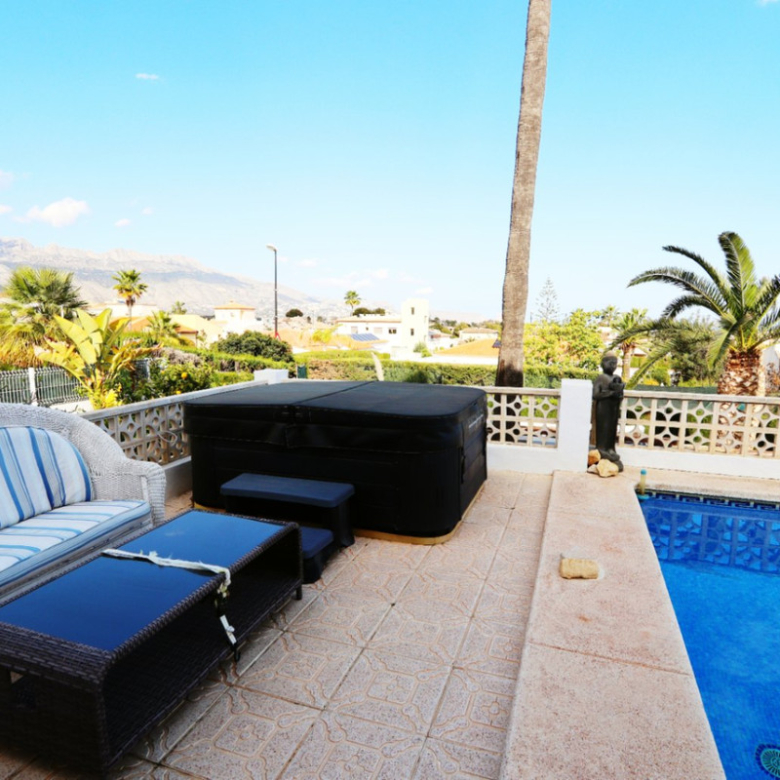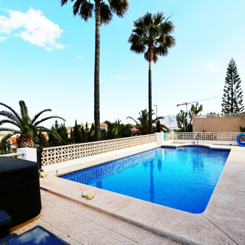 Située dans le quartier recherché de Bello Horizonte à La Nucia, juste à l’extérieur d’Altea, cette charmante villa familiale est l’endroit idéal pour vivre toute l’année. La propriété est répartie sur deux étages. L’accès principal mène à un grand garage intégré et à un porche ensoleillé, à partir duquel des marches mènent au jardin, où vous trouverez des orangers, des citronniers matures et de beaux palmiers.