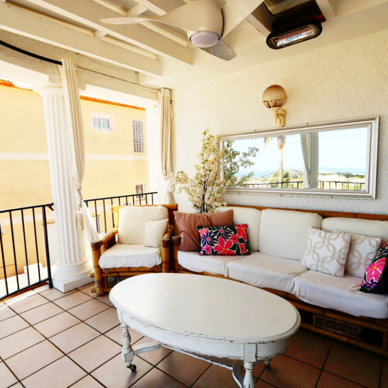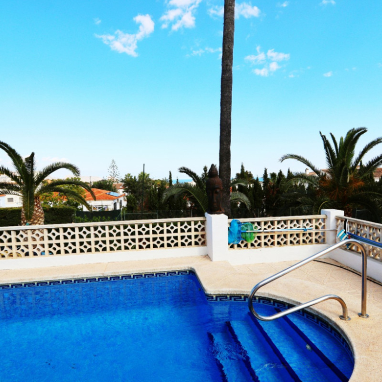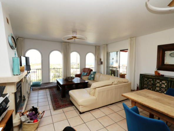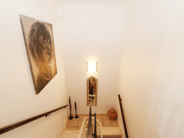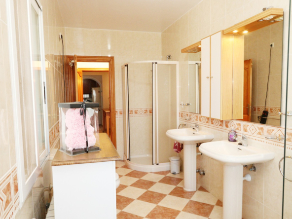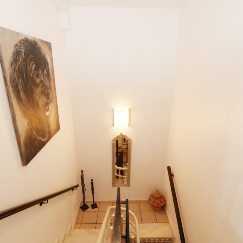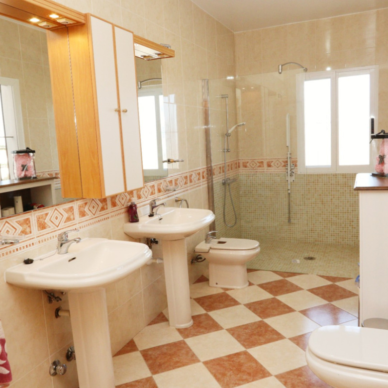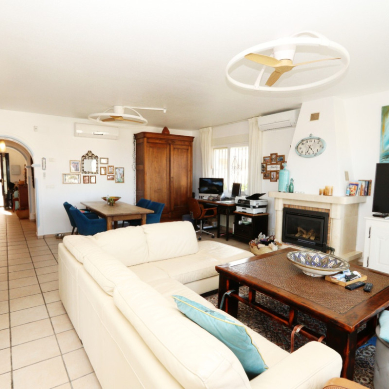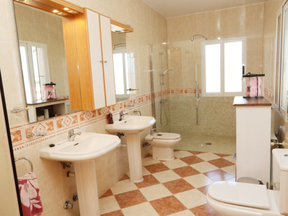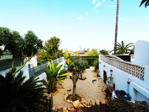 Le rez-de-chaussée est accessible à la fois de l’intérieur et de l’extérieur, ce qui en fait un choix idéal pour se divertir. Cet espace dispose également d’une cuisine séparée, ainsi que de 4 autres chambres (l’une d’entre elles actuellement aménagée en studio d’art), de 2 salles de bains spacieuses et d’une belle terrasse donnant sur la piscine chauffée. Les jardins nécessitant peu d’entretien, avec des palmiers, des arbres fruitiers et des arbustes, créent une atmosphère relaxante. La piscine est l’endroit idéal pour se rafraîchir pendant les nuits d’été chaudes et douces, et a l’avantage supplémentaire d’un jacuzzi au bord de la piscine et d’une douche extérieure.