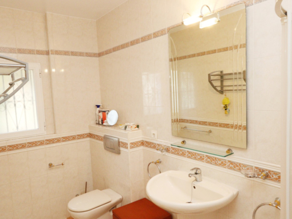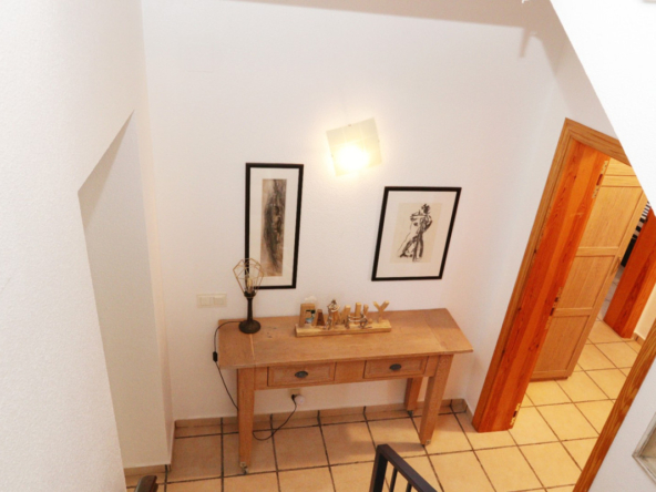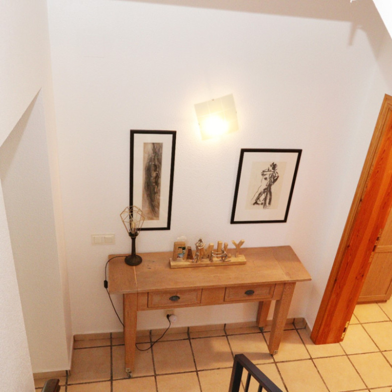 Au niveau de l’entrée se trouve la chambre principale avec salle de bain attenante, des toilettes invités, une cuisine spacieuse, une buanderie séparée et un grand salon-salle à manger avec cheminée, climatisation et chauffage central. De grandes fenêtres offrent une vue spectaculaire sur la mer, couvrant Altea, Albir et Calpe. À côté du salon, une superbe terrasse avec vue panoramique devient l’endroit idéal pour déguster un verre de vin tout en regardant le coucher du soleil.