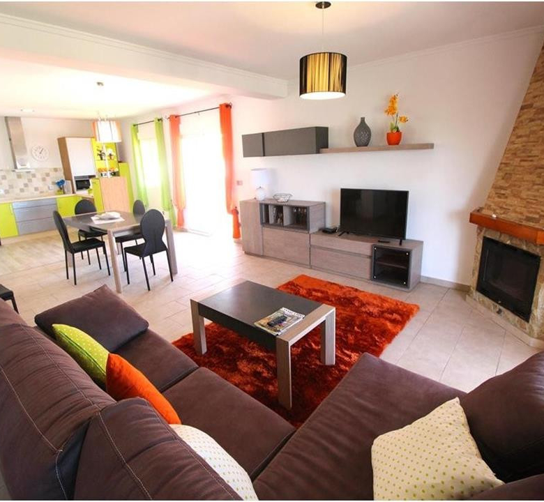 Impressionnante villa semi-moderne avec cheminée, piscine, jardin, barbecue, 3 chambres, 2 salles de bain (dont 1 en suite) et espace privé pour plusieurs voitures.