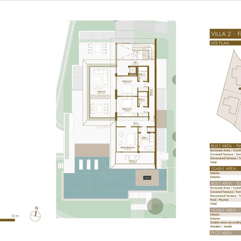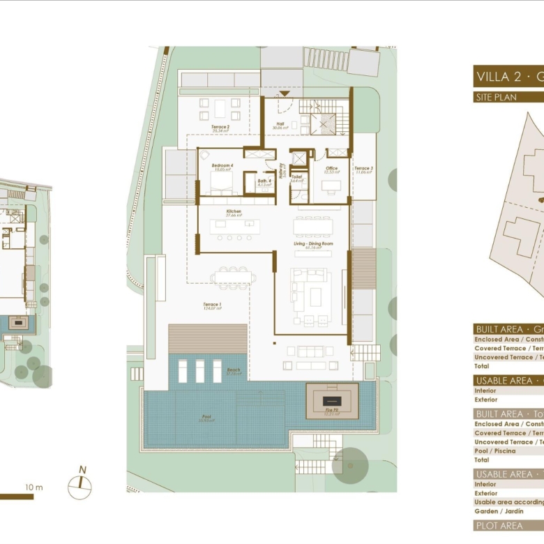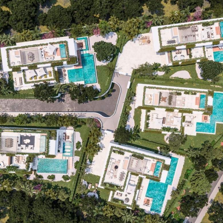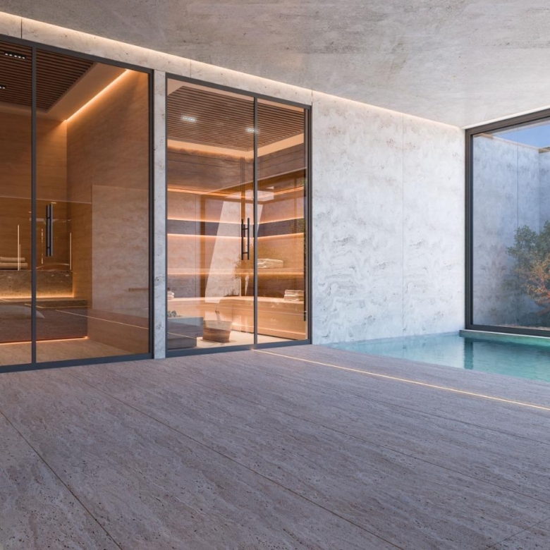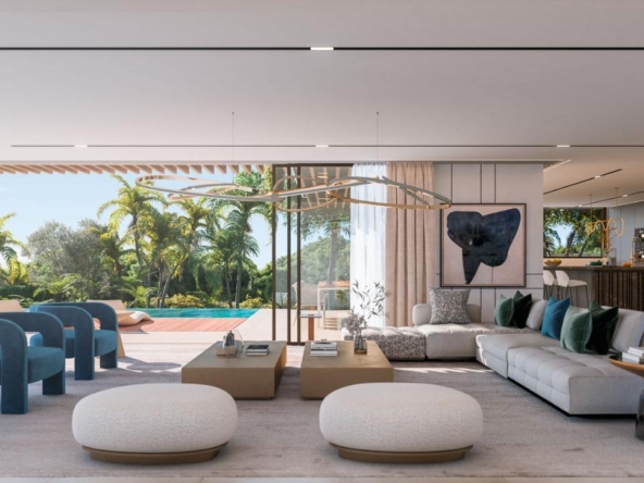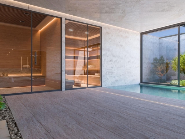 Les villas comprennent des espaces de vie ouverts de style contemporain et des cuisines magnifiquement conçues, des suites parentales spacieuses avec dressing et salle de bains, ainsi que des terrasses et des piscines modernes entourées de jardins luxuriants et de murs en pierre massive.
