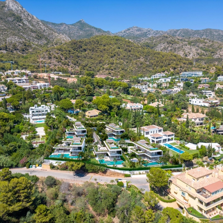 Ce projet peut se vanter d’avoir une vue panoramique sur la mer et les montagnes, car il est situé sur les pentes de la montagne de La Concha, près de l’exclusif Golden Mile, à environ 5 km de Puerto Banús, 3 km du centre urbain de la ville et avec un accès facile à l’autoroute A7.
