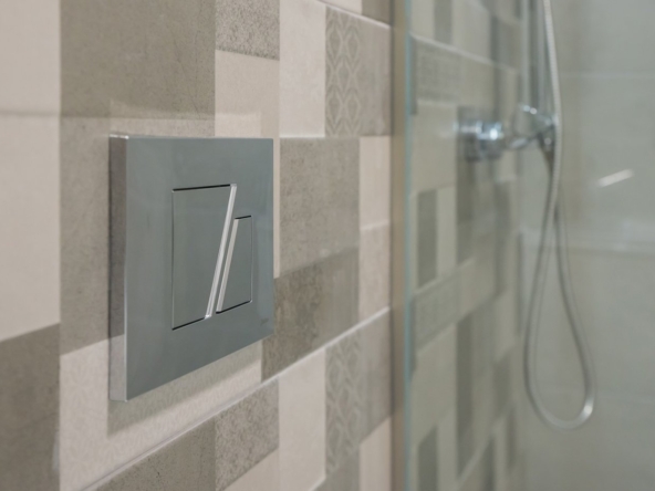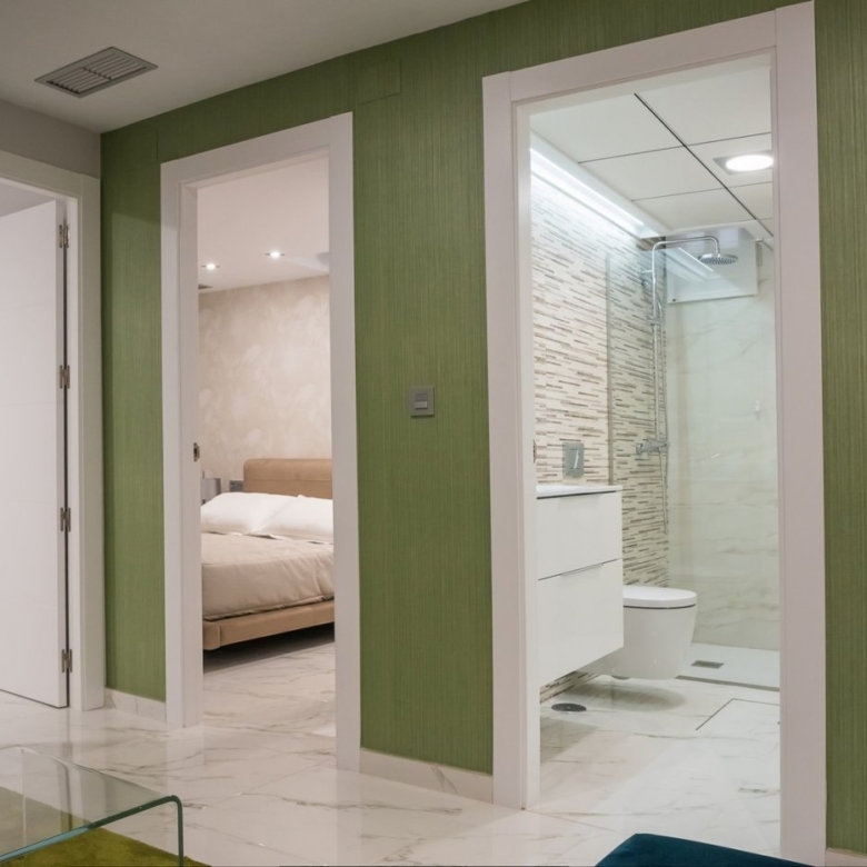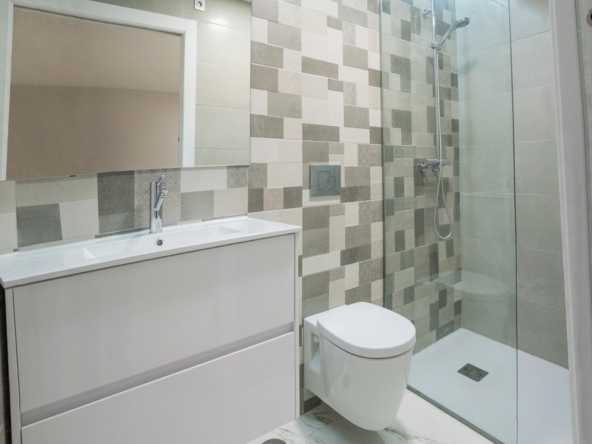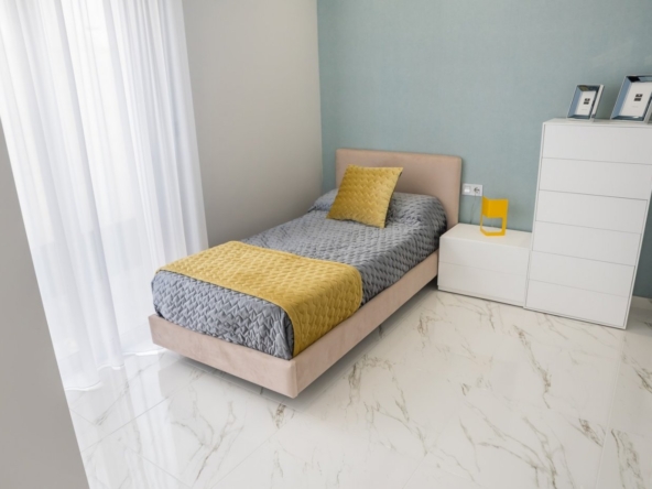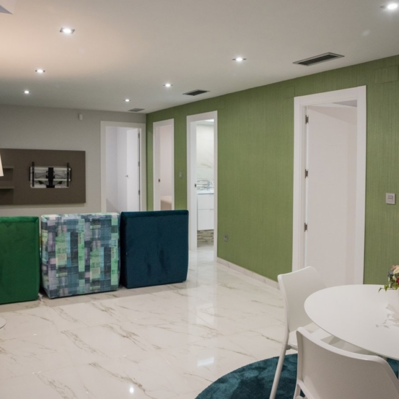 Il se compose de 3 chambres doubles (toutes avec placards intégrés), 3 salles de bains (une en suite), cuisine intégrée moderne entièrement équipée (avec bar pour le petit-déjeuner), grand salon / salle à manger ouvert menant à un jardin clos avec piscine privée et parking, et un solarium sur le toit spacieux.