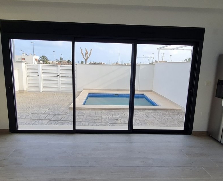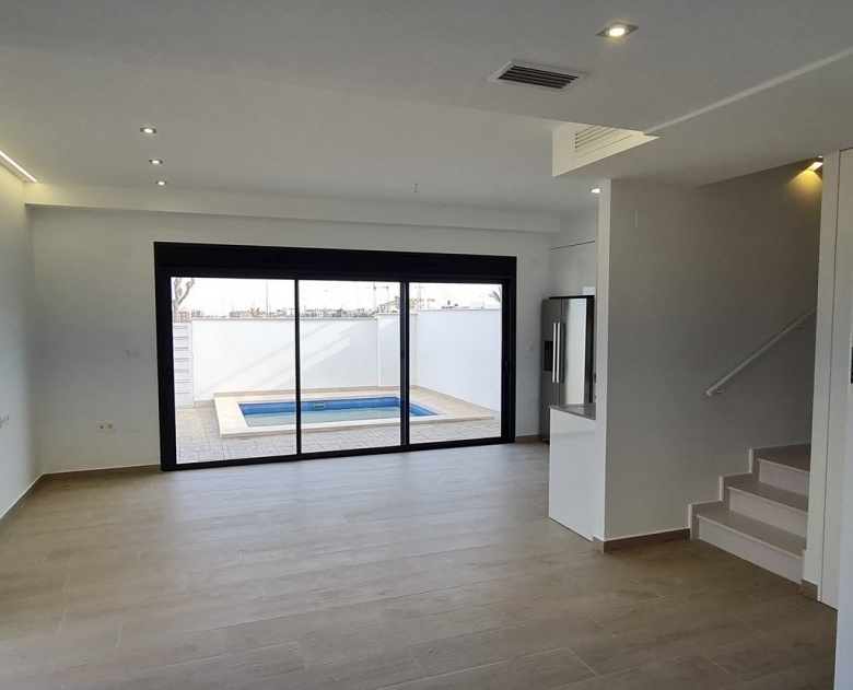 De belles villas avec 3 chambres à coucher et 2 salles de bains, salon, cuisine, galerie et terrasse construites sur des parcelles de 150m2 à 223m2, avec jardin avec piscine privée et espace de stationnement.