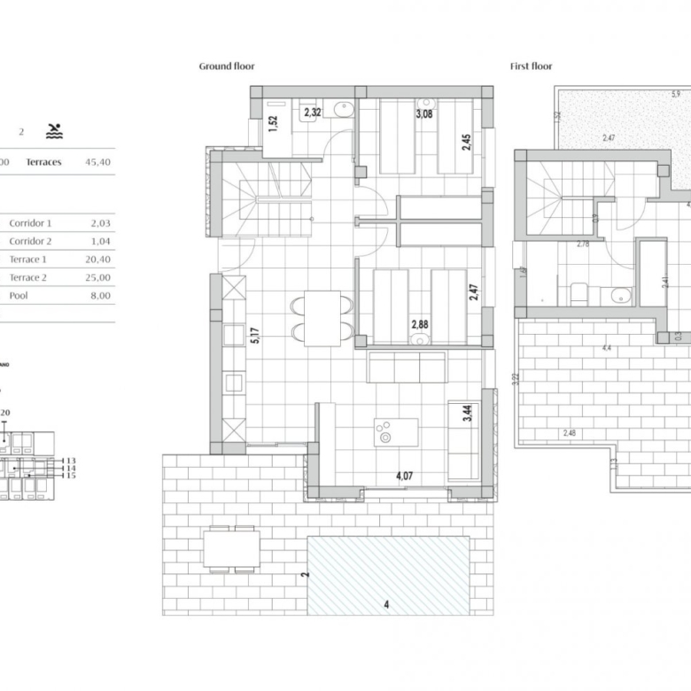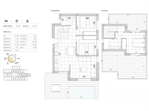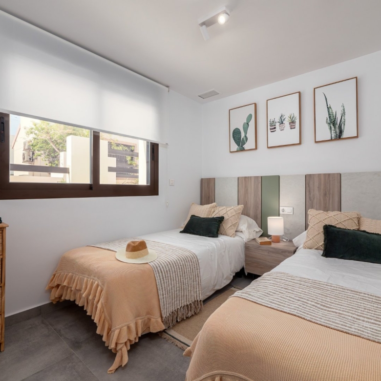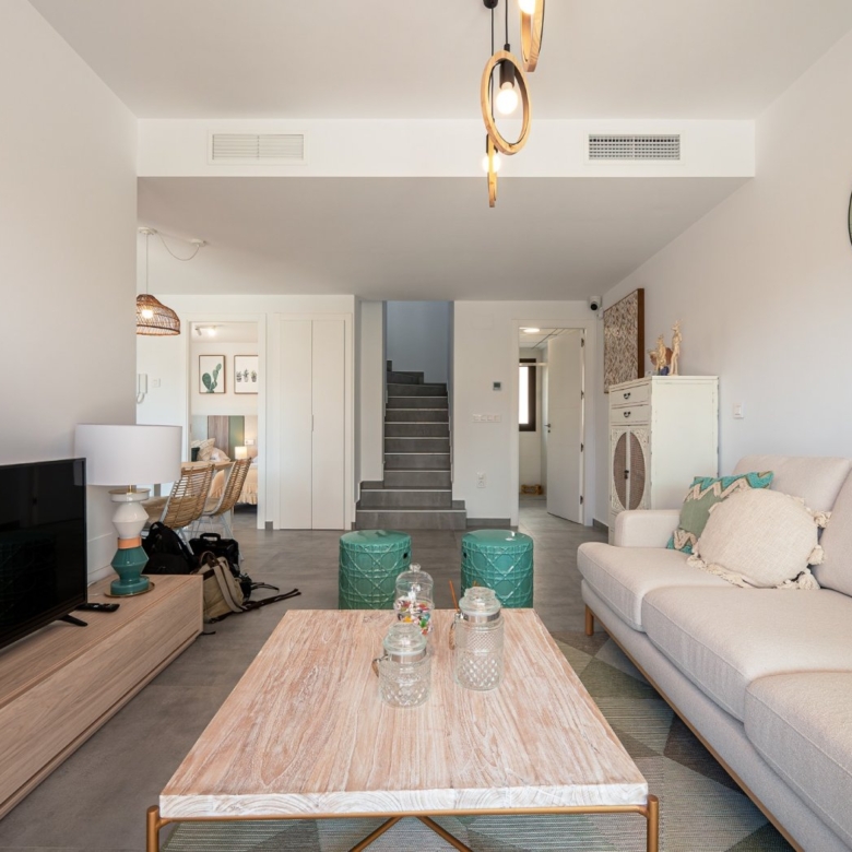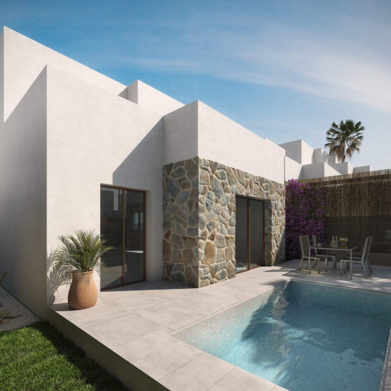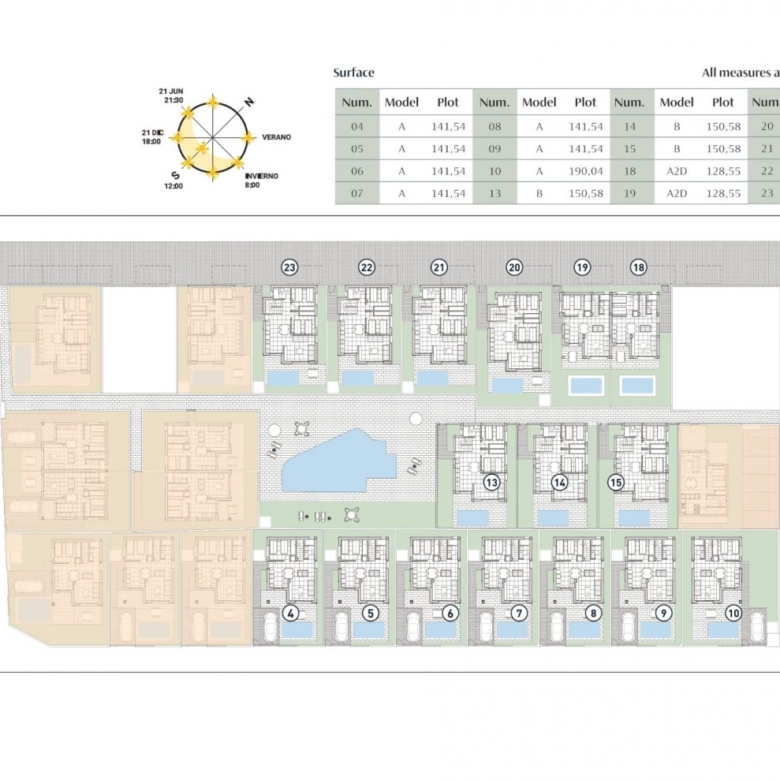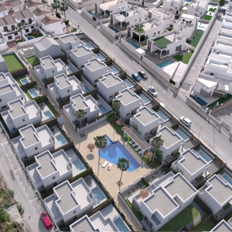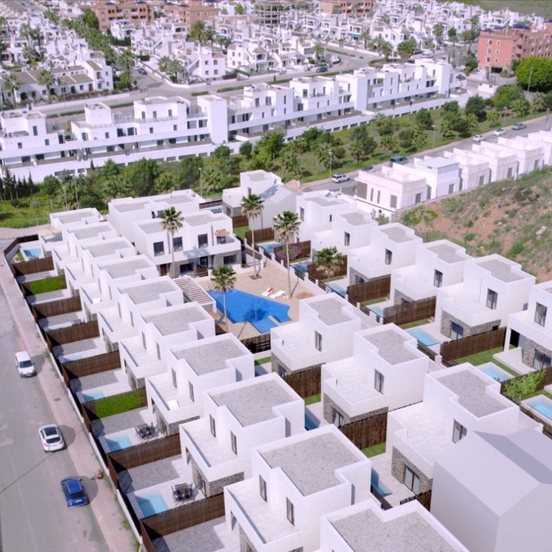 Résidentiel composé de 25 villas sur deux niveaux avec différents modèles indépendants ou jumelés avec 3 chambres et 2 salles de bain, ainsi que des jardins privés et une grande zone commune avec une piscine.