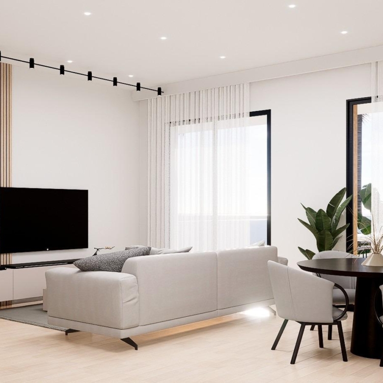 Propriétés modernes construites sur 3 étages, avec 3 chambres à coucher, 2 salles de bains, cuisine ouverte avec coin salon, armoires équipées, climatisation par conduit, sous-sol, solarium, jardin privé avec la piscine et place de parking.