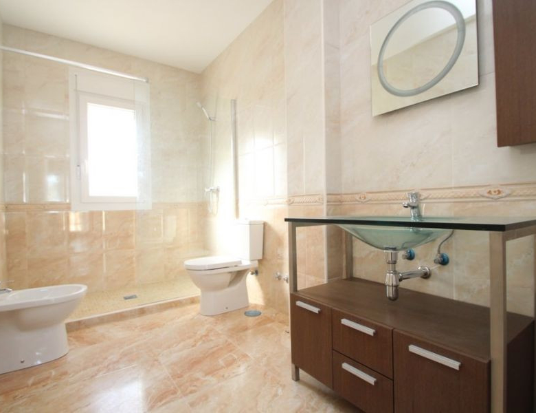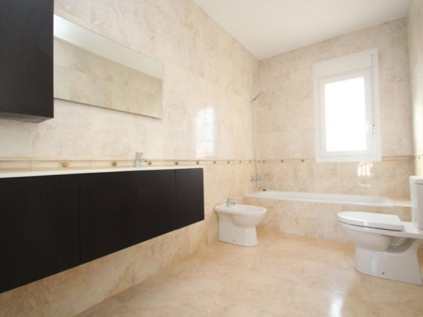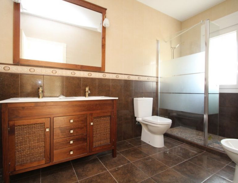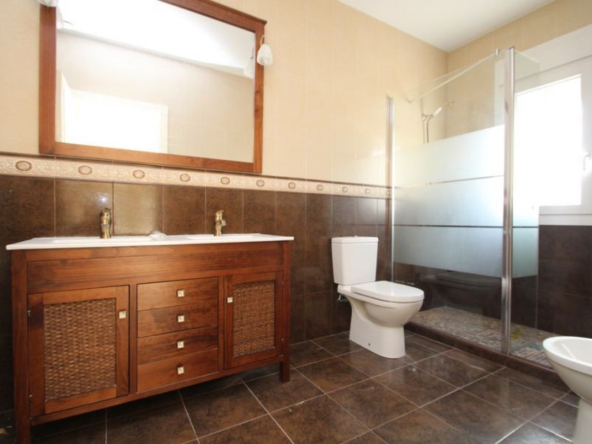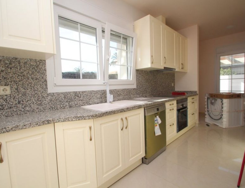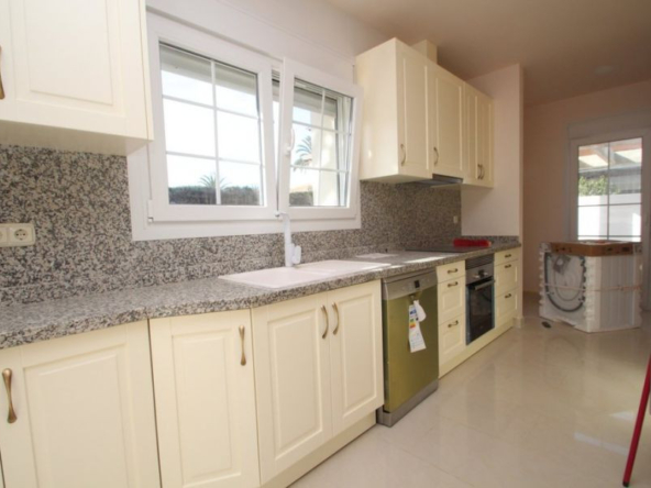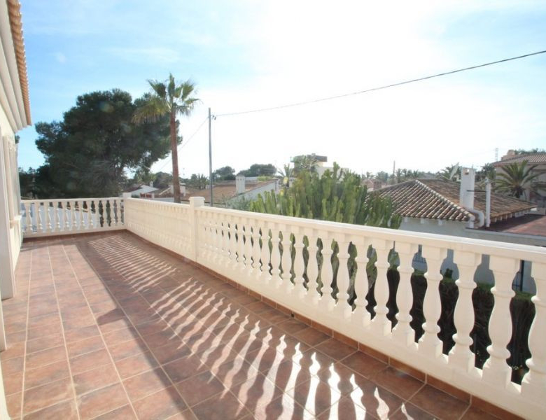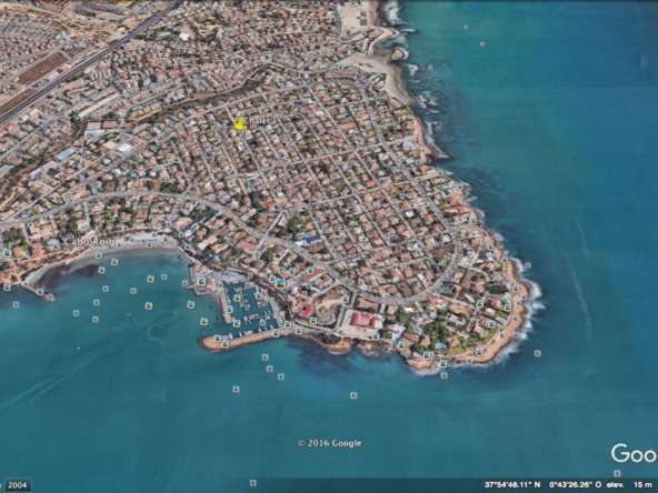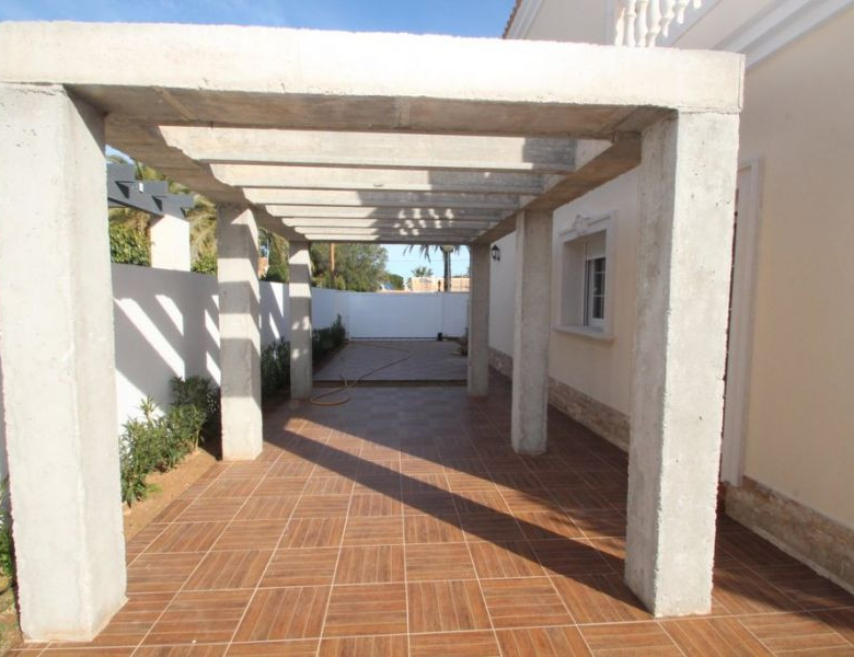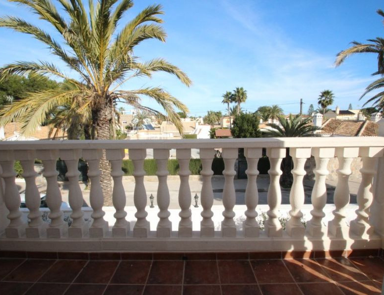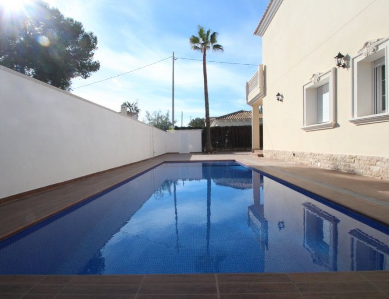 Cabo Roig, Villa de 220 m2 sur terrain de 520 m2 avec piscine. 5 chambres dont 3 en suite, 4 salles de bain avec chauffage au sol, 1 wc, cuisine équipée, ample salon/salle à manger avec cheminée, solarium, terrasses, porche. A 300m de la plage..