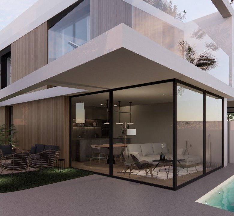 Eksklusive 3 værelses villaer beliggende kun 300 m fra stranden i Torre de la Horadada.