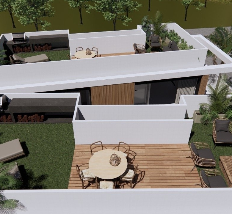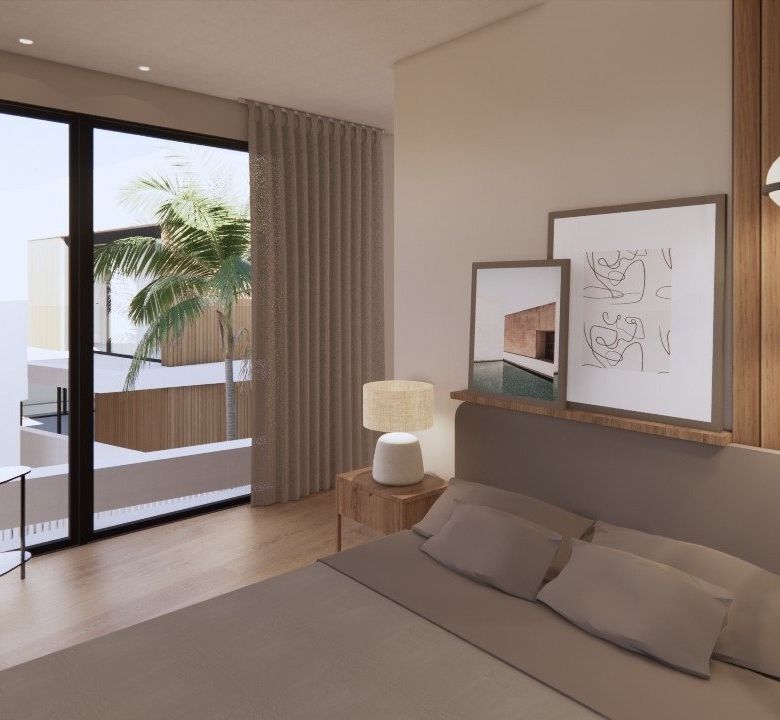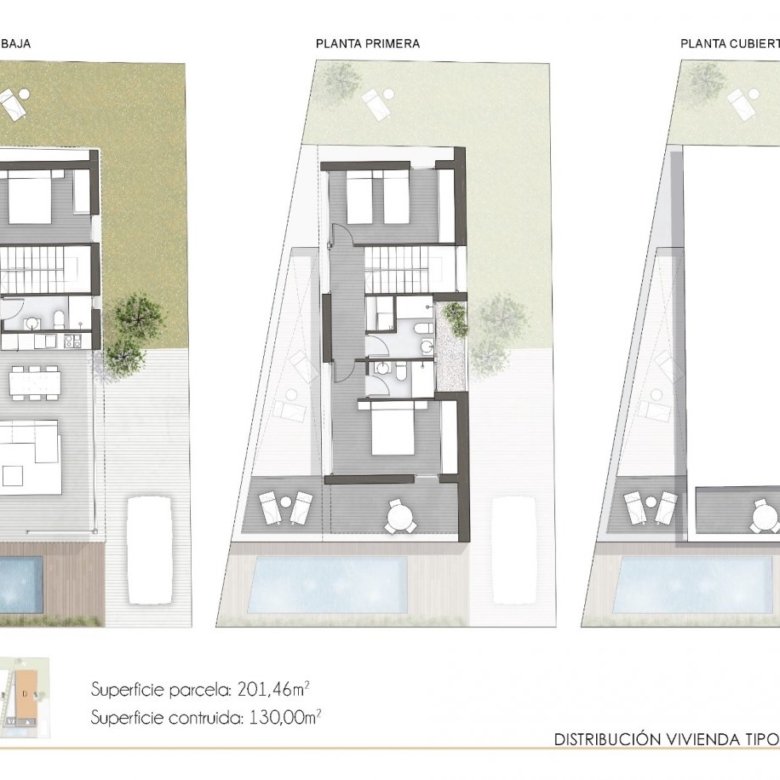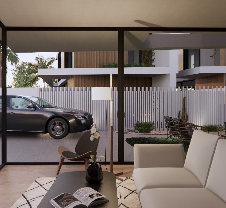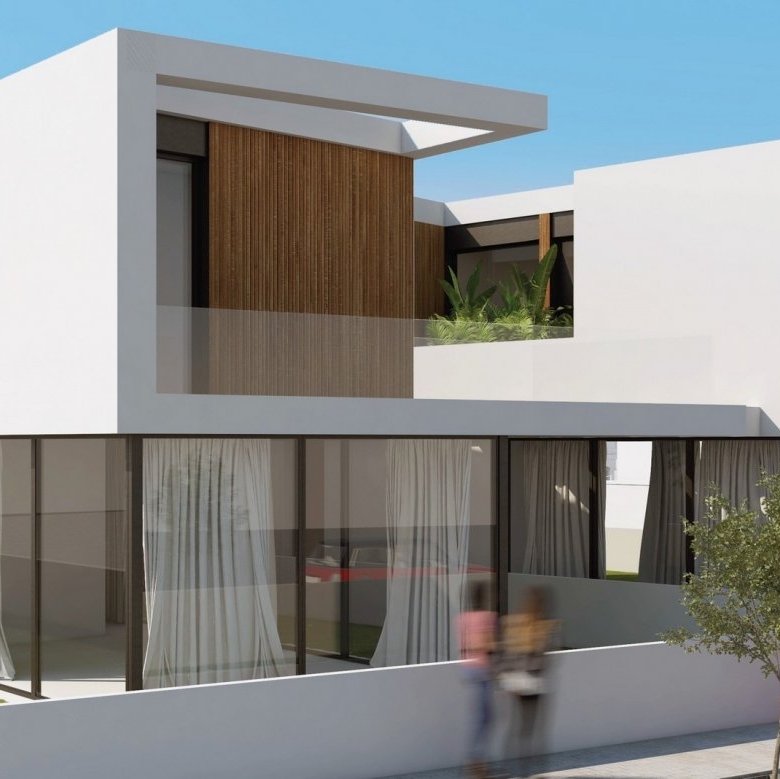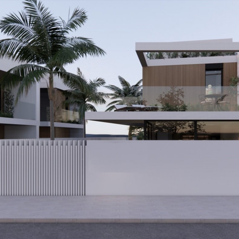Villaer har 3 soveværelser, 3 badeværelser, stue med åbent køkken, have med privat pool og parkeringsplads.
