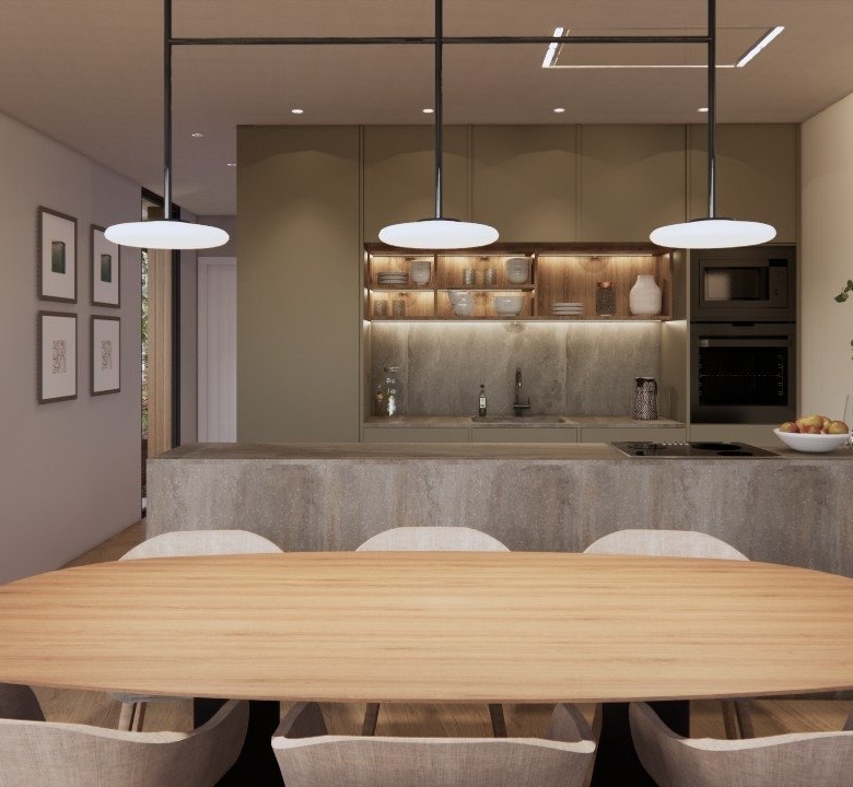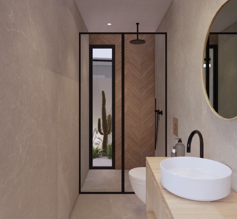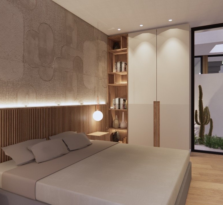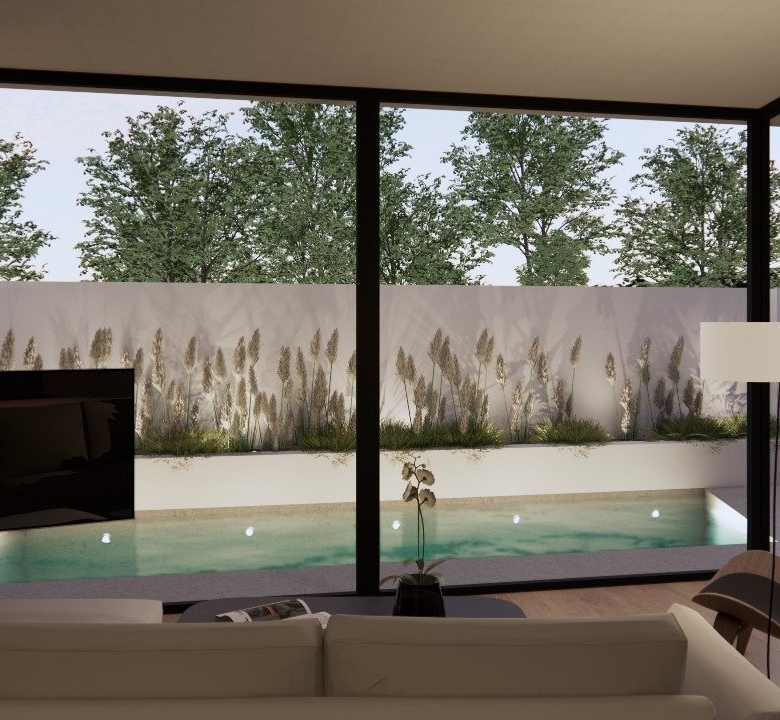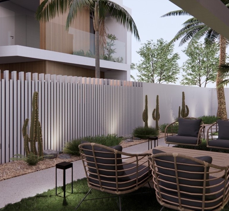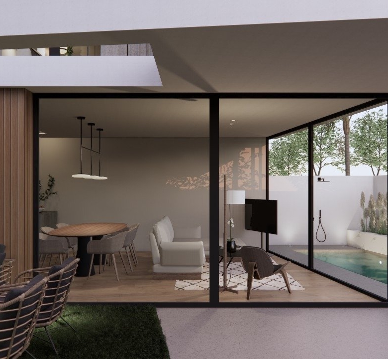 Villaer har 3 soveværelser, 3 badeværelser, stue med åbent køkken, have med privat pool og parkeringsplads.