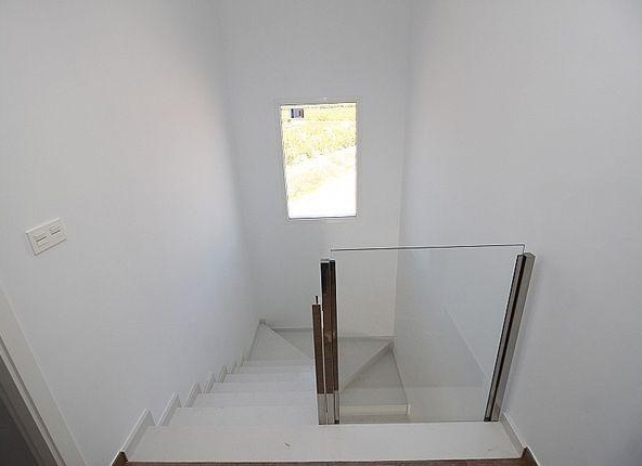 Grande fenêtre en verre fixe sur l’escalier pour plus de lumière.